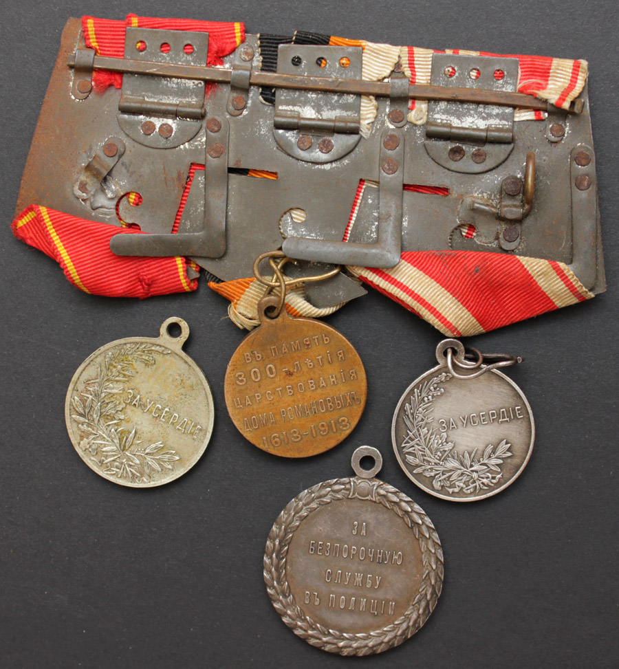 Kena tsaariaegne medalite komplekt - kaks Za Userdie medalit, 300-aastat Romanove ja medal teenistuse eest politseis.