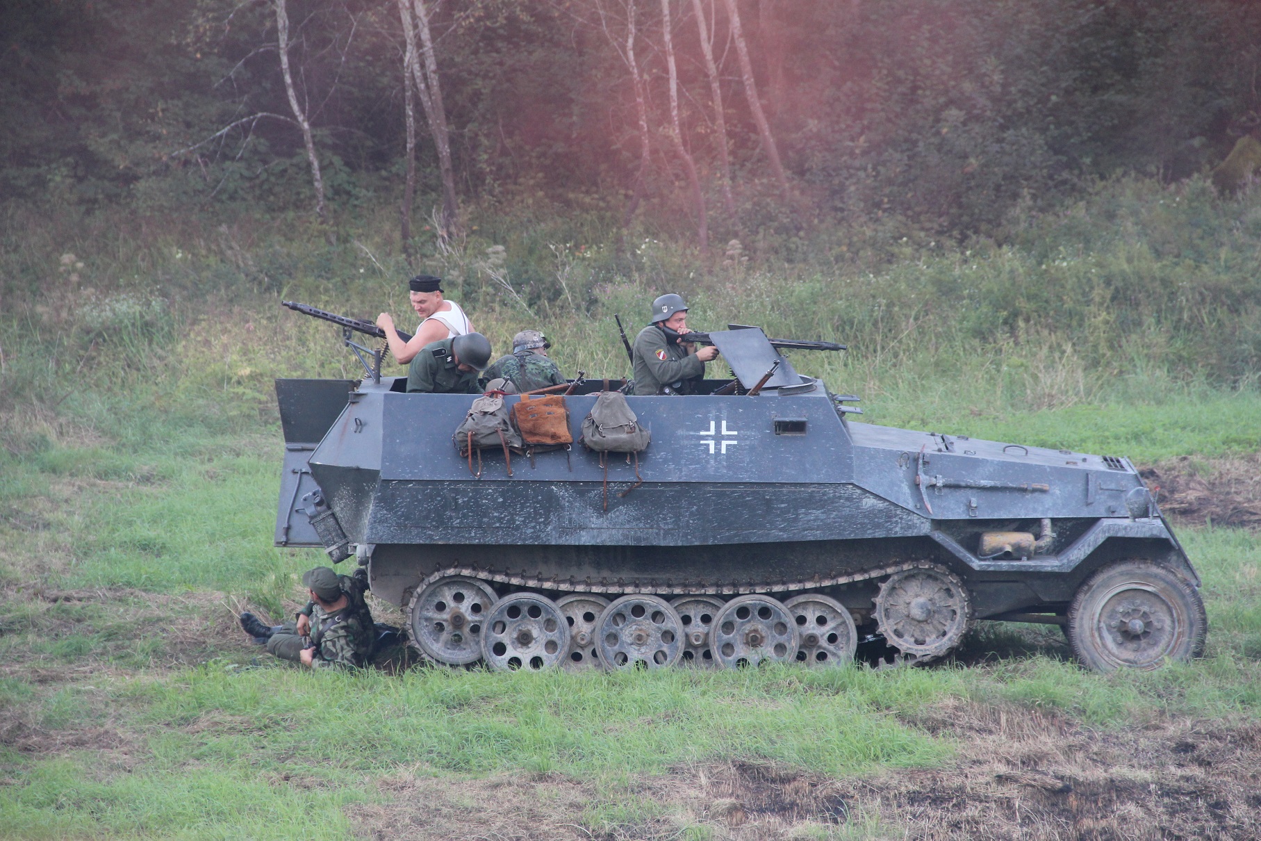 See maikaga kloun on Läti venelane, kes on selle soomuki omanik ja temalt rendime vajadusel relvi juurde. Kuigi on kord, et lahingusse ilma kiivrita ei lasta, on see mees kuidagi läbi lipsanud ja lisaks veel frentsi ka seljast visanud.divine kirjutas:Esines ka musti. Kuigi pildil olevale kolhoosnikule tuleks korrektsuse huvides triibuline selga fotoshoppida.tonu kirjutas:Muideks see valge maika oli SS spordisärk