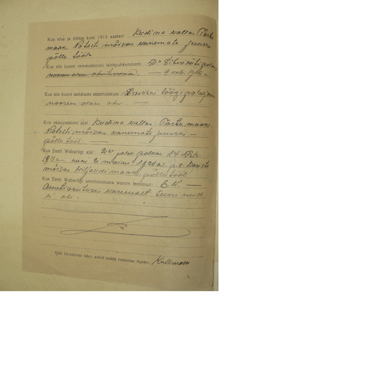 See peaks olema ikka Maailmasõja aegne, panen siia esivanema Eesti Vabariigi politseisse tööleasumise ankeedi pildi üles.