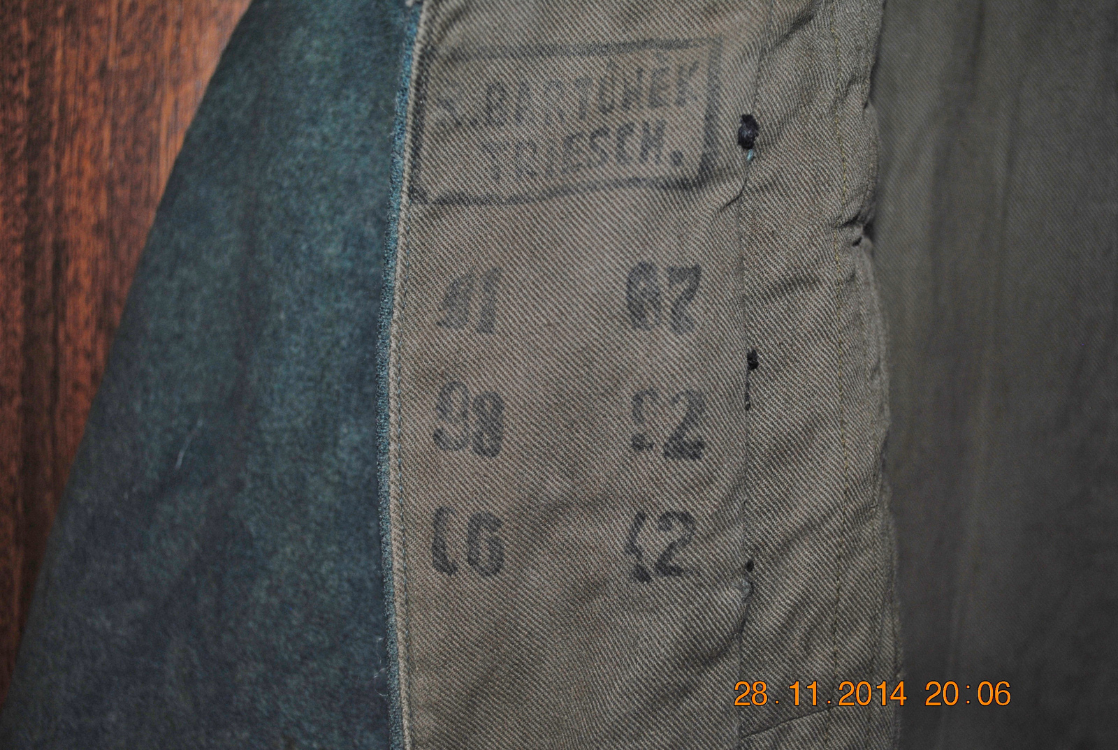 Panin foto illustreerimaks juttu.Jah frents väga kvaliteetse tegumoega.Tempel sees 1941.Krae ja varukaotsad mustjaspruunid kahe nööbiga ja rohelise kandiga ääristatud. Feldmütze ühe nööbiga ja samuti purematta.Isegi mütsimärgi eest harutamisel jäänud niidijuppe on veel näha.