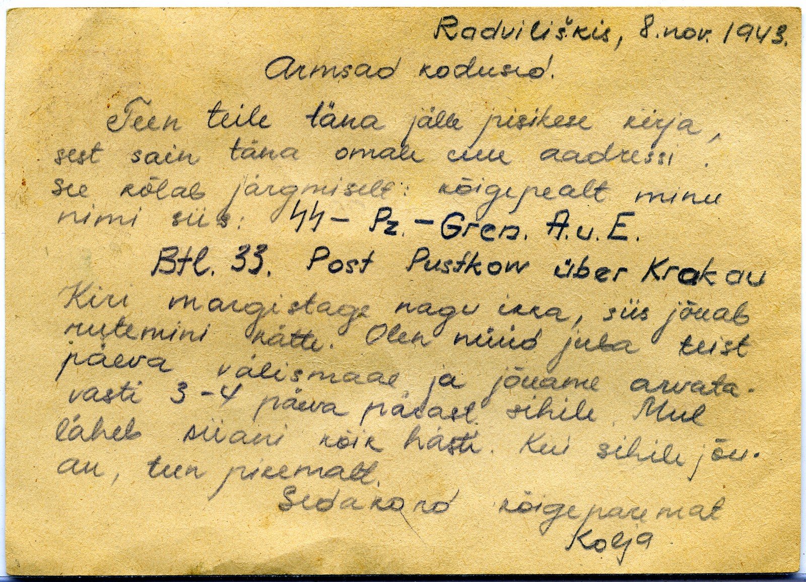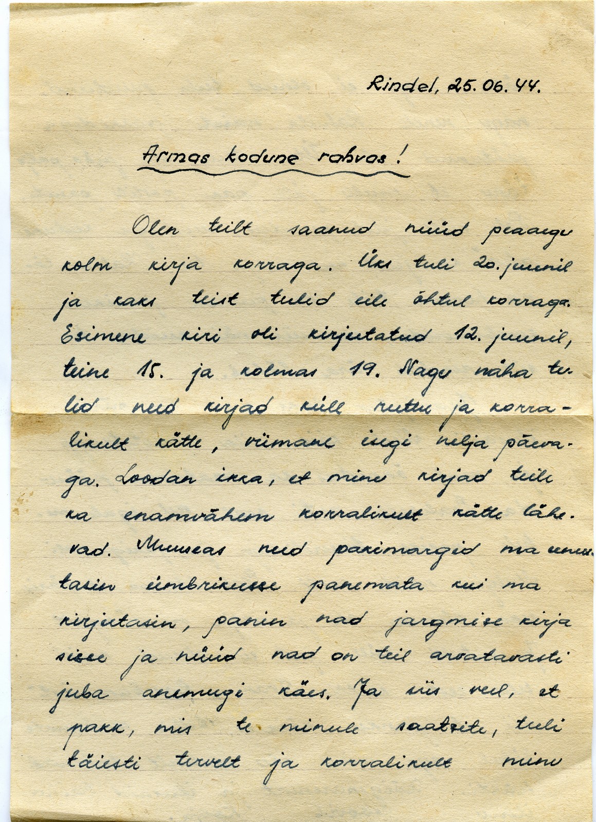 Re: Kirjad Eesti SS mehelt kodustele...