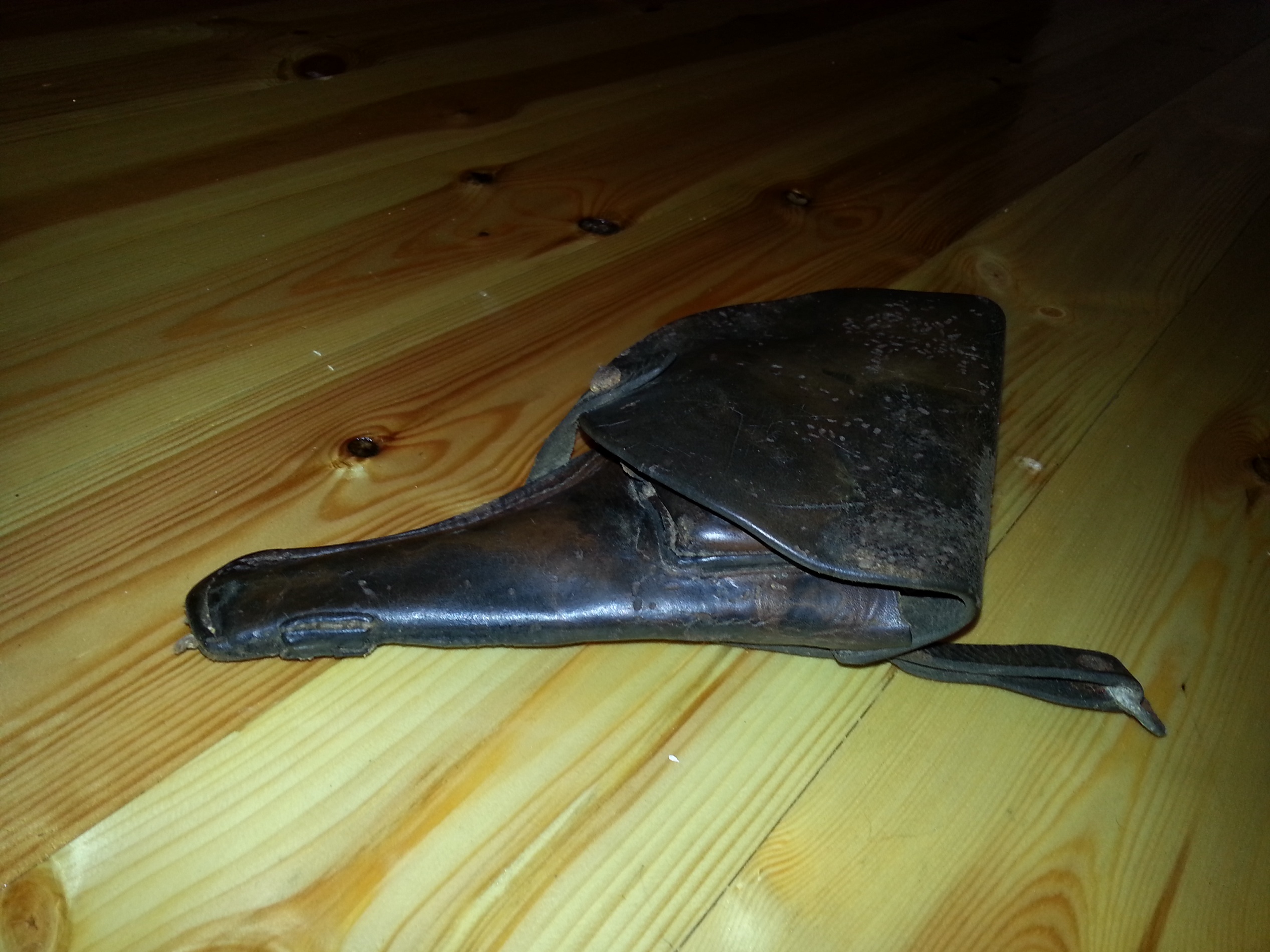 Lisaks on üle veel üks nagaani kabuur, tegumoelt sõjaeelne aga templit klapilt ei tuvasta. Nahk on pehme ja kannatab painutamist, needid aga rauast ja kehvas seisus ning puhastusvarda kinnituse aas tuleks uus õmmelda aga äkki passib kellegi kratile ilusti. Kui kellelgi huvi peaks olema, siis andke märku ja ma mõtlen talle miski väärtuse või veel parem, vahetame millegi vastu.