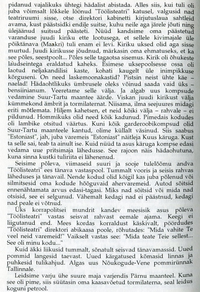 "Kalamajas Kalma sauna lähedal kihutas ühele sellisele süütajast puhvpükstes kirsamehele kuulid kerre hilisem väga tuntud keskmaajooksja Erich Veetõusme."