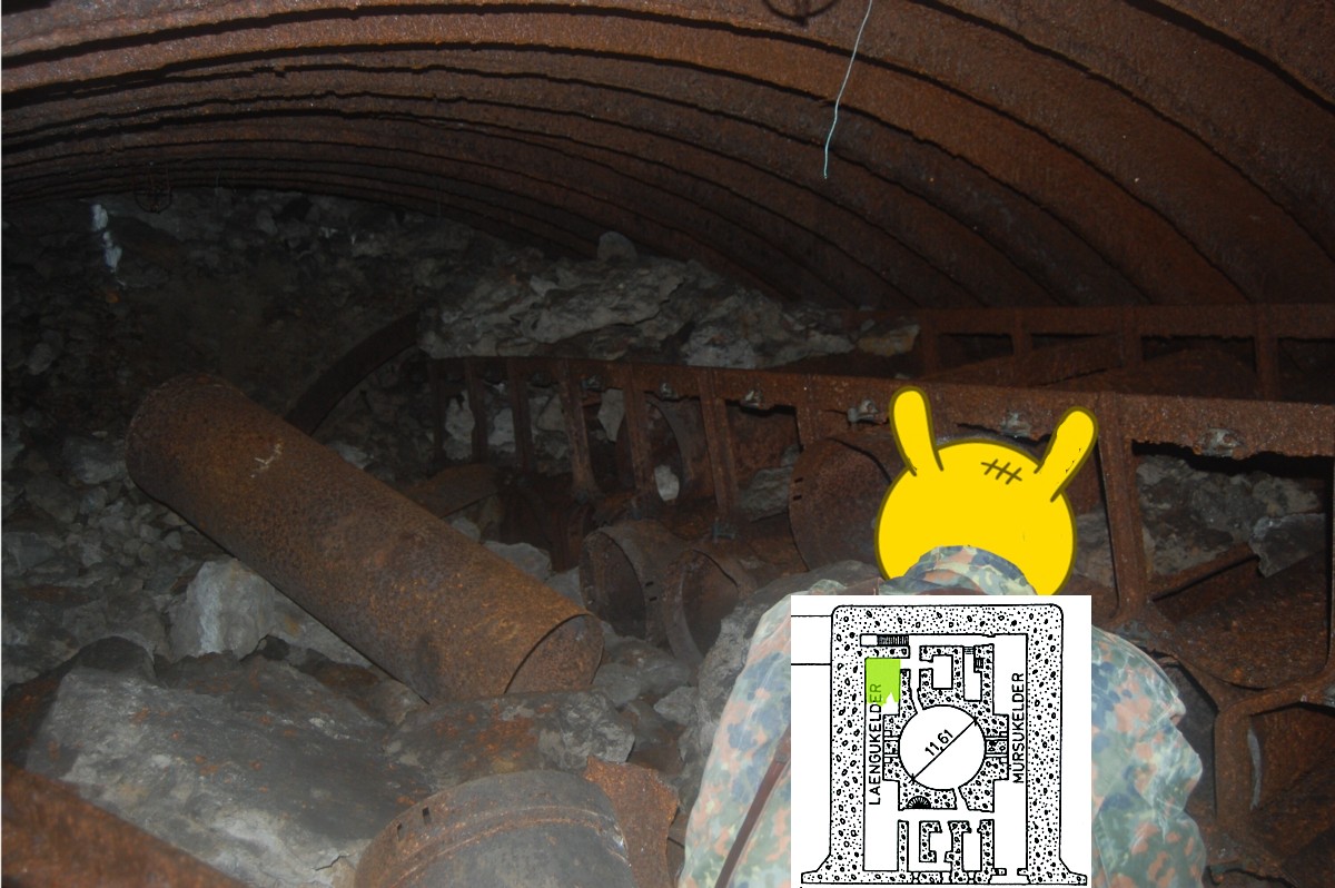 Pääs laengukeldrisse paistab paremalt, kus uksesilluse raudtalad on plahvatuse toimel kohalt nihkunud.