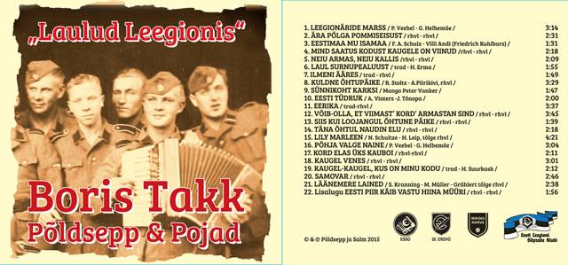 12.08.15 ilmub eesti sõdurilaulude plaat pealkirjaga:"Laulud Leegionis". Solistiks on vana sõjamees Boris Takk. Plaadil kõlavad II MS eesti sõdurite poolt lauldud laulud, enamuses tuttavad"hitid", kuid on ka lugusid, mida pole varem avalikult avaldatud. Kokku 22 laulu, lihtsas, mitte ülemäära ilutsevas värvingus, aus kaup:) Koos nendega paneme ka internetti üles Borise ja tema sõjasõbra meenutused ja kommentaarid igale laulule, täiesti vabas vormis, audiofailina.