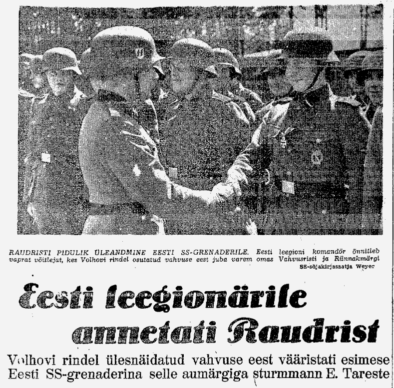 Põhja Kodu 27. juuli 1943 annab teada, et hiljuti annetati ühele väljaõppel olnud leegionärile Strummann Edgar Taruste väljaõppelaagris II kl Raudrist, mille kinnitas talle rinda isiklikult leegioni komandör. Raudristi oli annetatud Volhovi rindel toimunud lahingute eest.