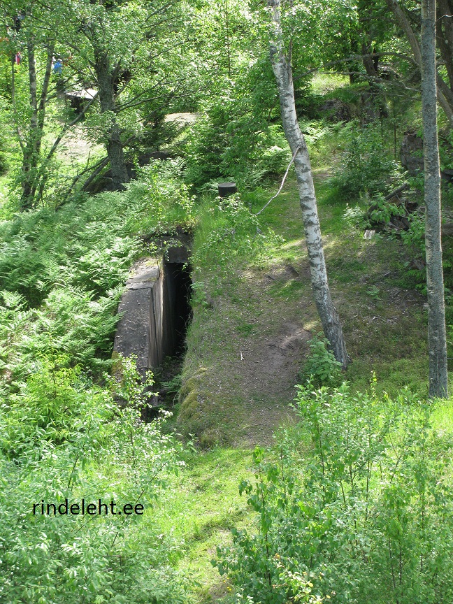 Vaatlus-laskepesa. Betoonsuurtükialus. Tunneli maapealsed ehitised. Üks sissepääsudest. Ilus vaade Savikaldalt.