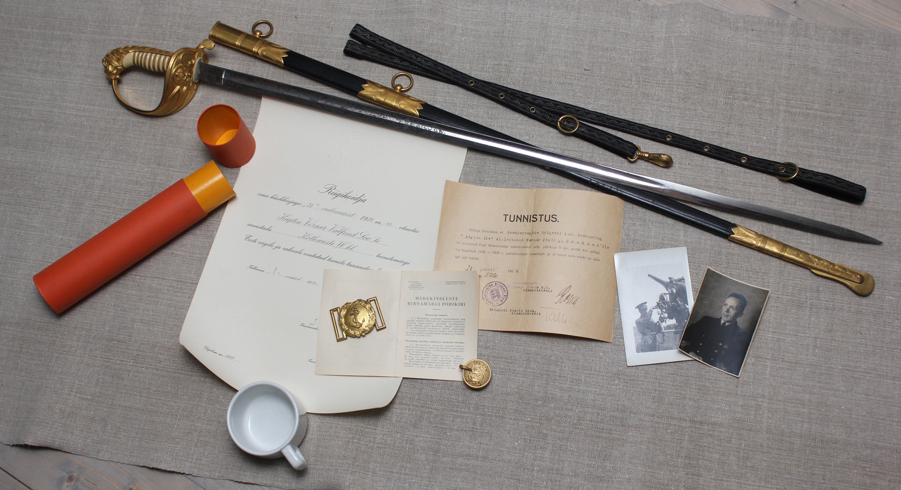 Väike komplekt Aegna MK Rannapatarei nr. 10 (õhutõrje) pikaaegsele ülemale, vanemleitnant Verner Brokner'ile (Valdur Loo) kuulunud esemeid ja dokumente.