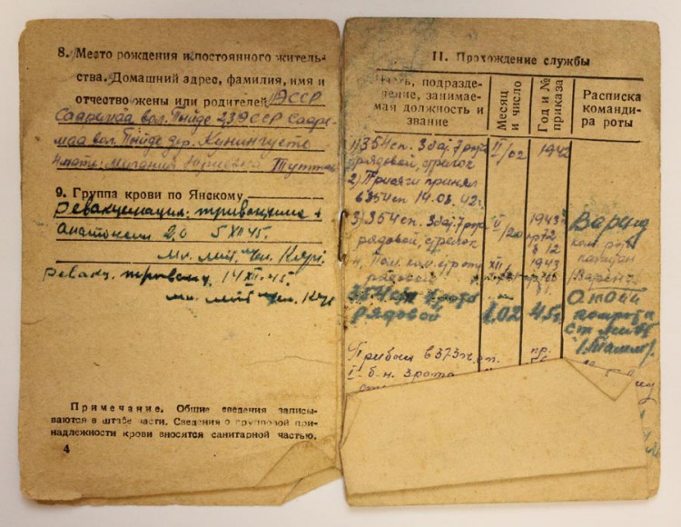 Teine vapruse medal 2 402 785 saadud vastuluureüksuse SMERSH käsutuses karistusüksuses olles ( ilmselt Kuramaal ), kus peeti erilist hoolt selle üle, et kõik kes peaks on ikka eesliinil ja täidavad oma lahinguülesandeid. Lühidalt siis midagi sellist. Tegelikult esitati ta viimase eest Punatähe ordenile, aga sai Vapruse medali.