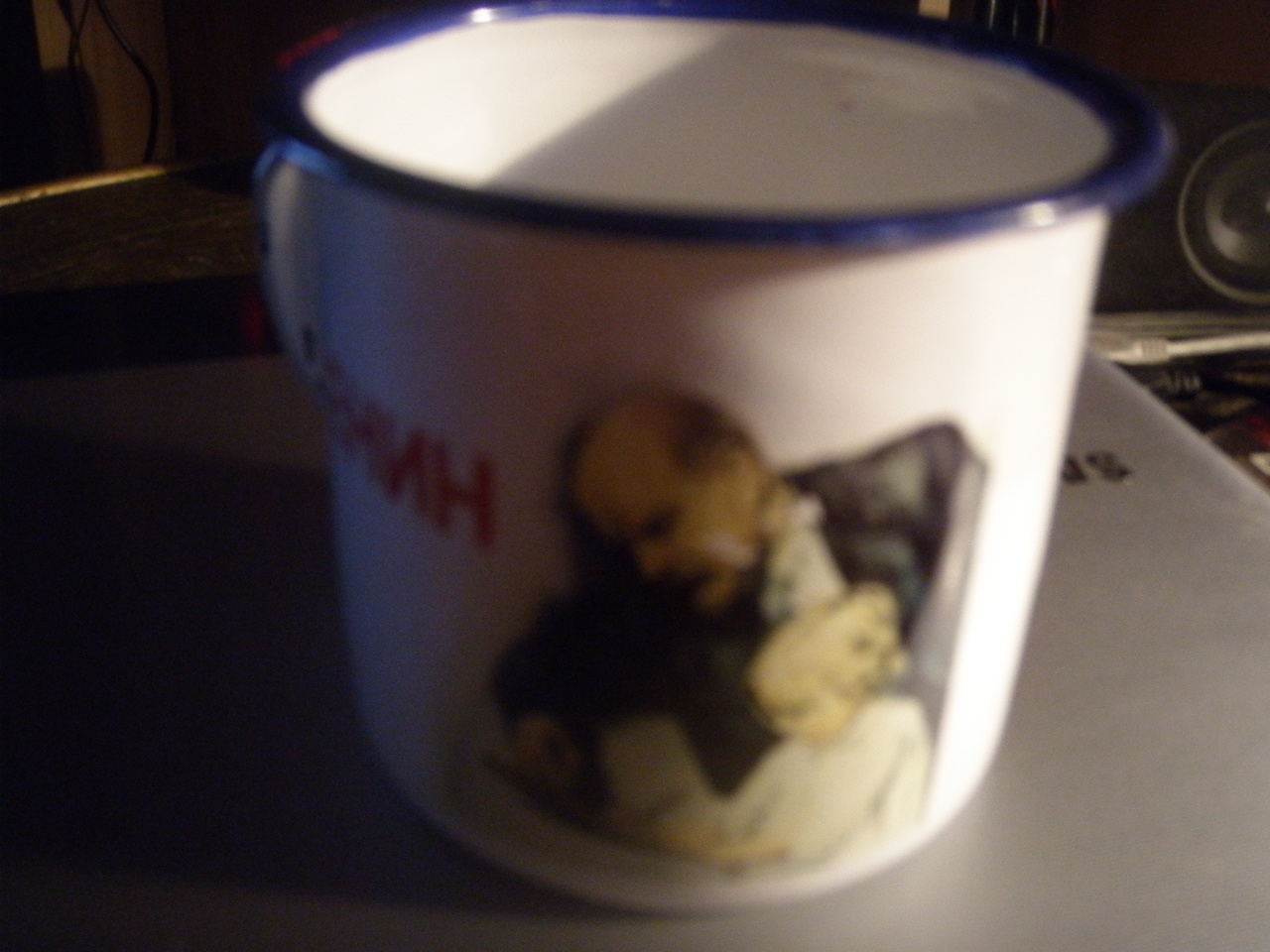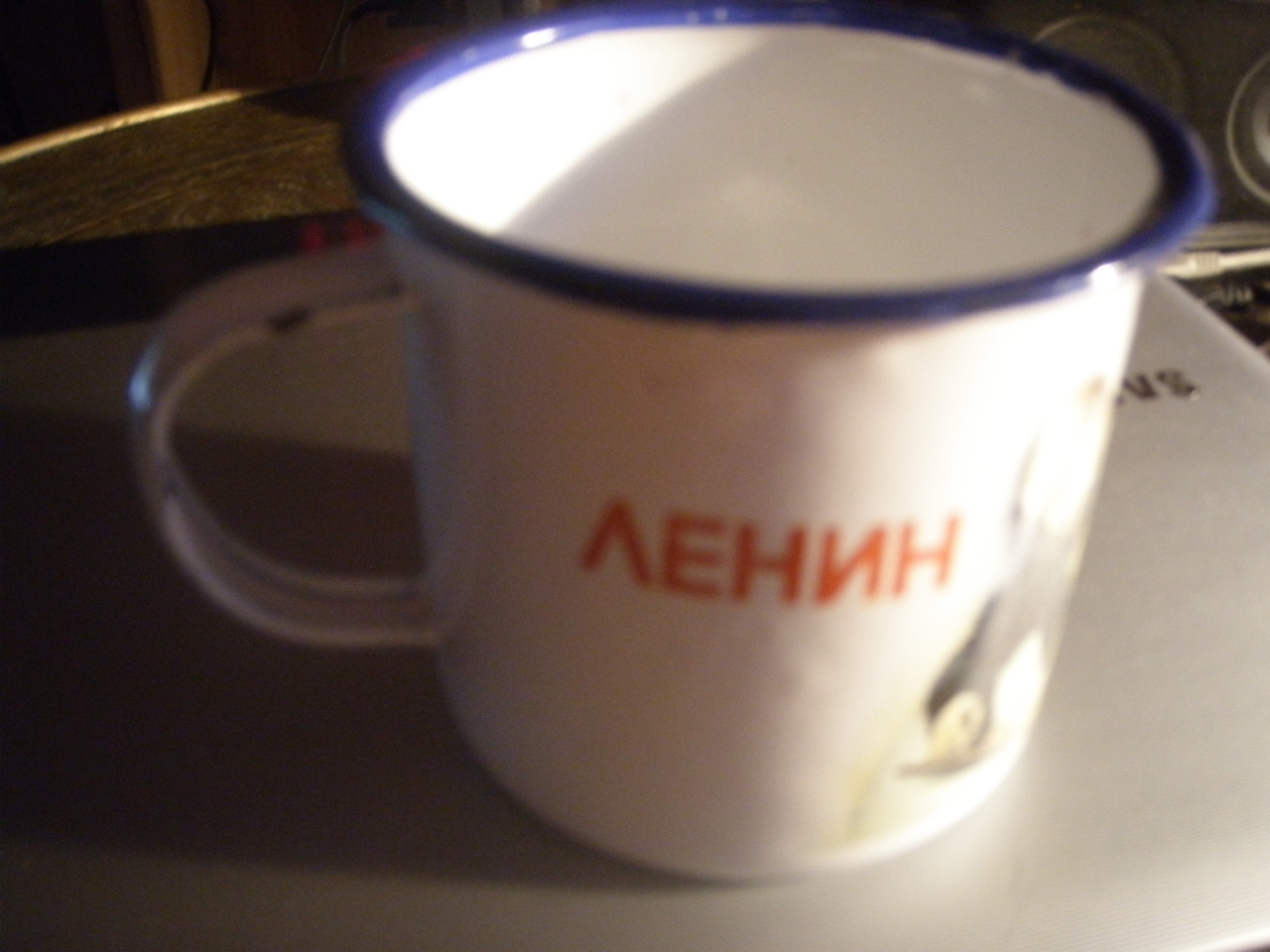 tere jõululaupäeval käis seltsimees LENIN mul külas vodkat joomas ja unustas ära minnes oma nimelise ja pildiga emailitud plekk -kruusi kuuse alla, mille ma rõõmuga oma kollektiooni panin.