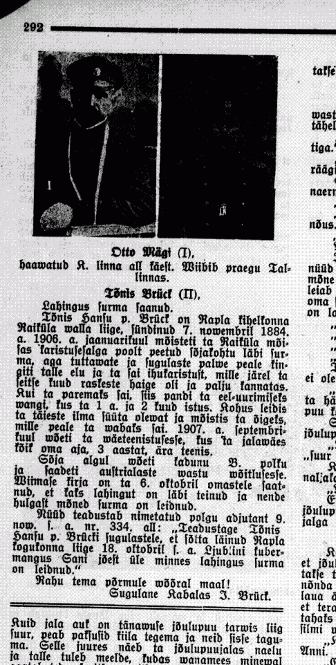 Sirvides Saaremaa päevalehte "Hääl" (14.dets.1914) sattus ette selline artikkel: "Tehke sõjameeste mälestus surematuks" kus jutt selline: