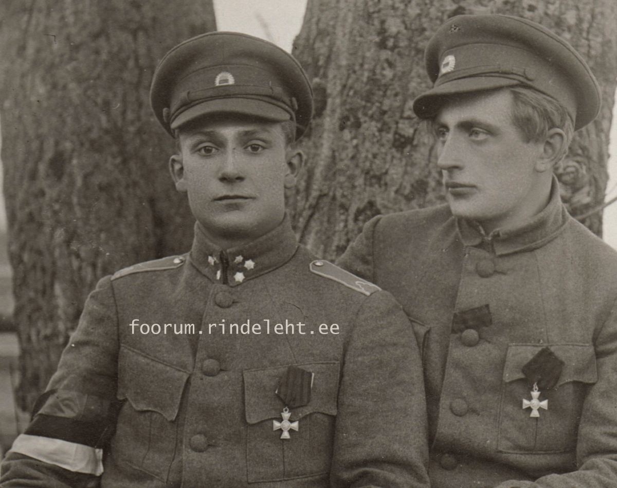 Georgi risti IV järgu kavalerid Kristjan Noor ja Elmar Männik Vabadussõja aegsel ülesvõttel.