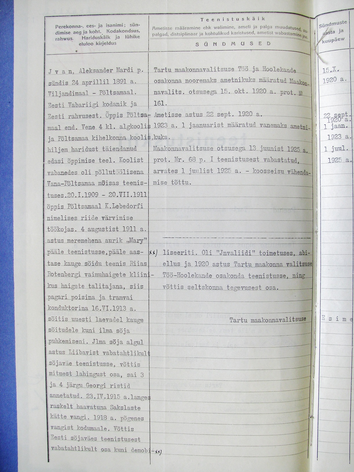 160. Aleksander Mardi p. Ivan - Georgi risti IV ja III järkVolli2 kirjutas:Vabadussõjast võttis osa staabis kirjutajana.