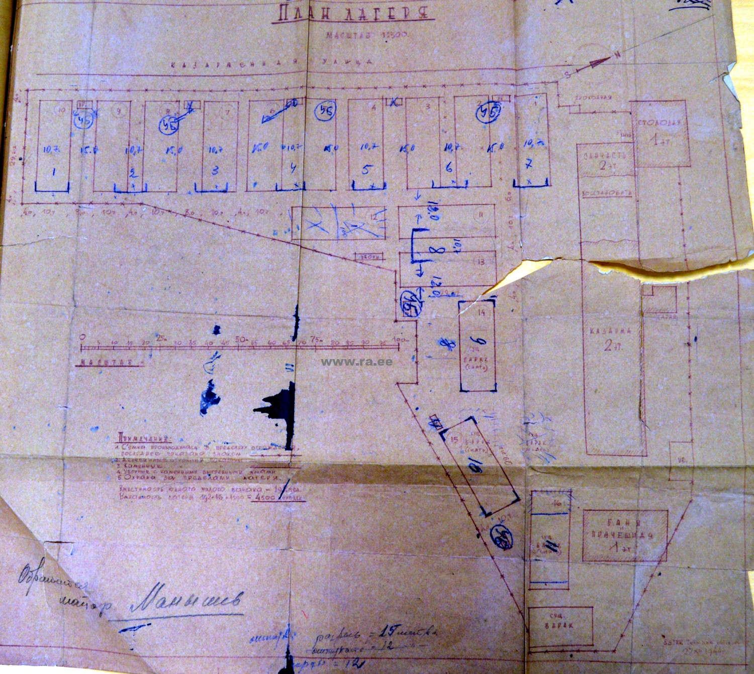 Kas "Merebassein"? Vangide eluruumidena olid kasutusel vanad magasiaidad ja laohooned. Sõjas purustatud hooned olid selleks tarbeks katustega kaetud ja sisustatud kahekordsete puunaridega.