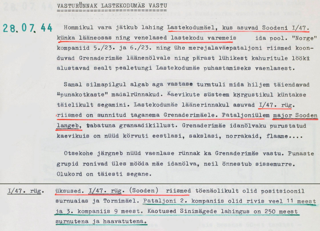 Re: 47. rügemendi I pataljon Sinimägede lahingutes
