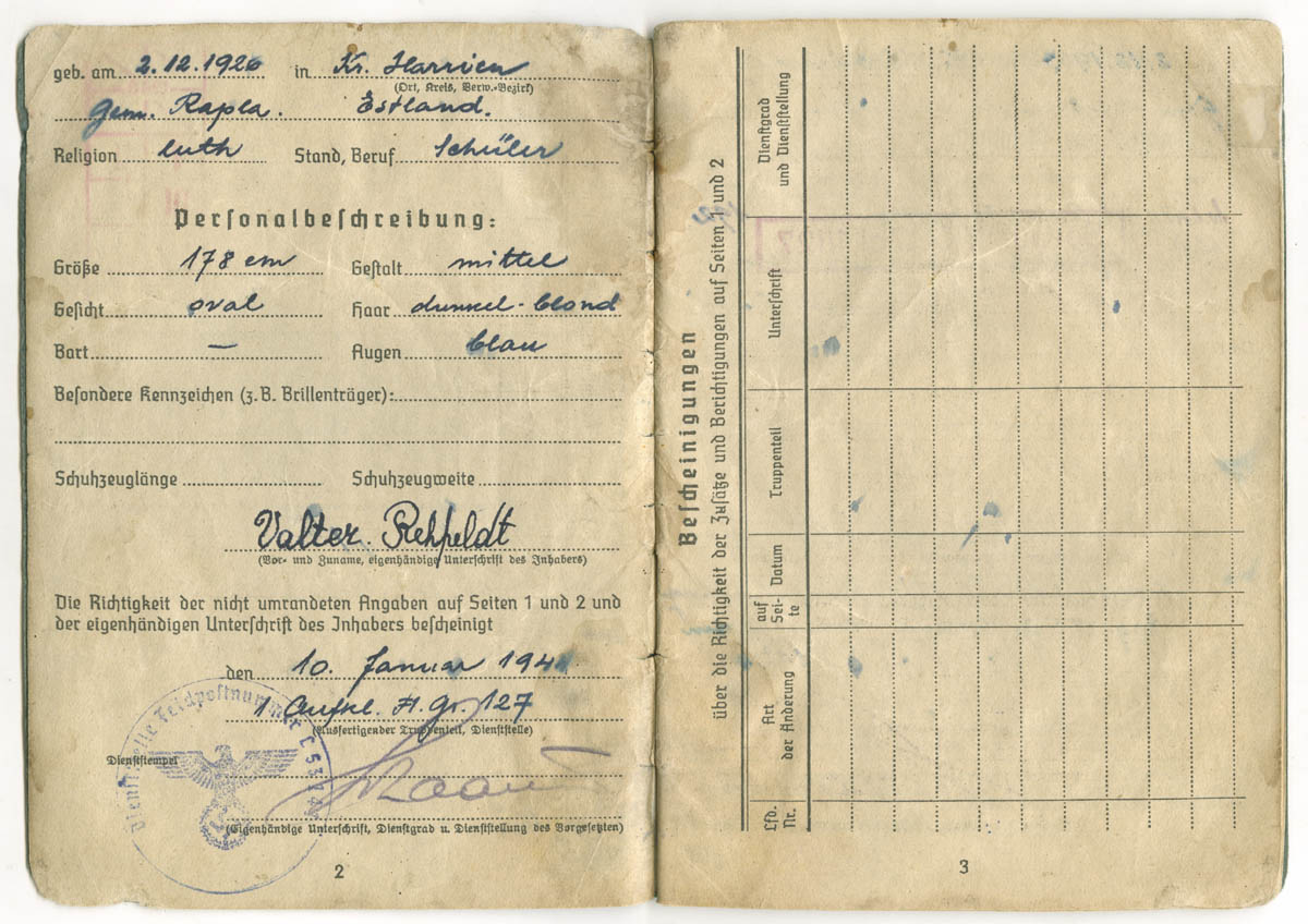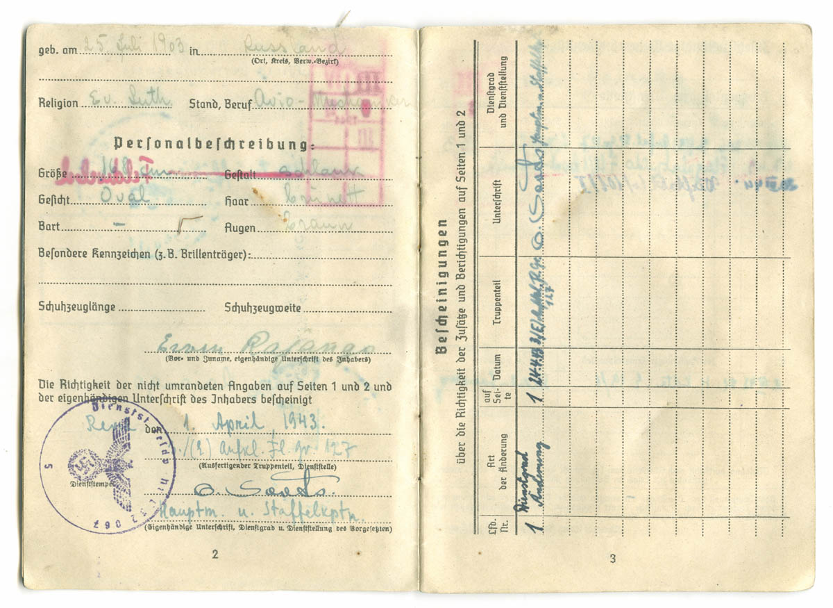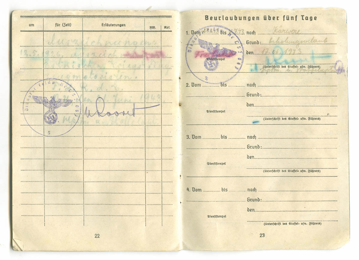 Siin on veel üks täpselt samasuguste kuupäevade ja teenistuskohtadega Soldbuch.