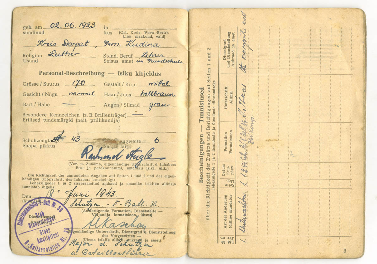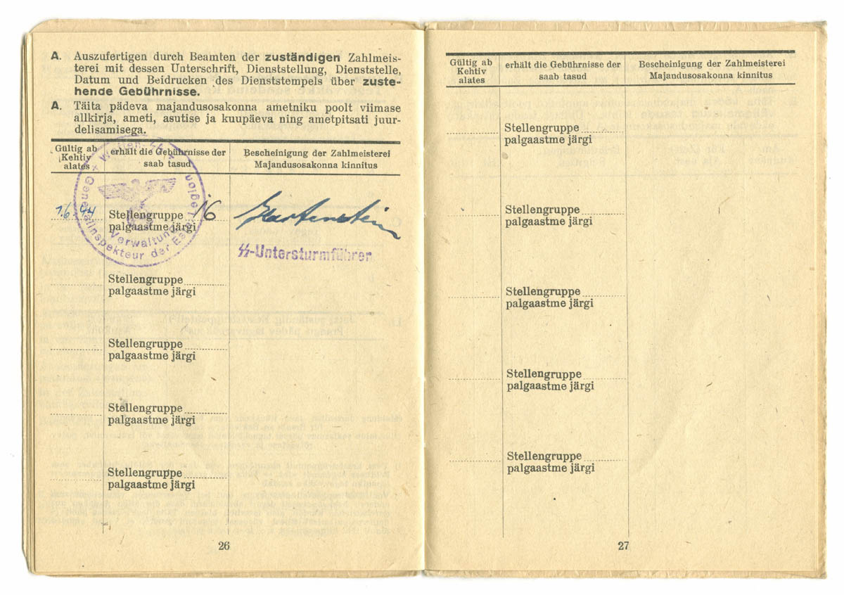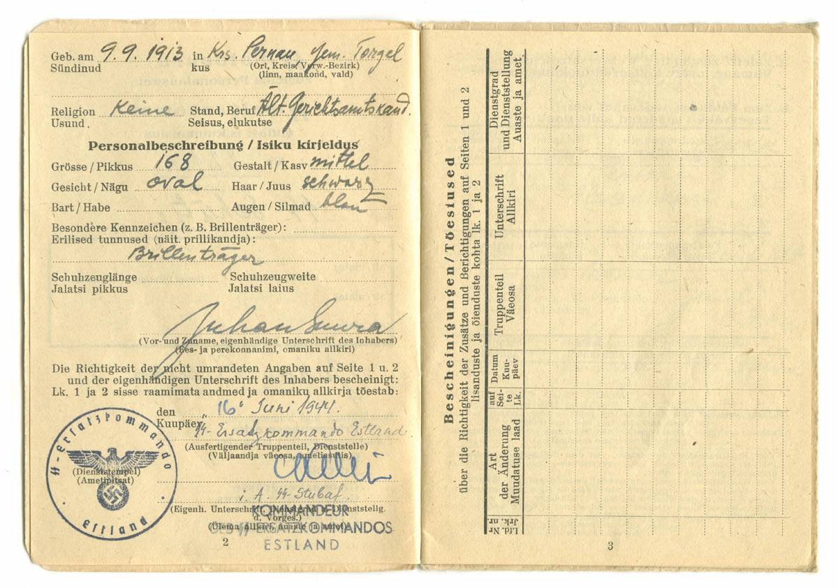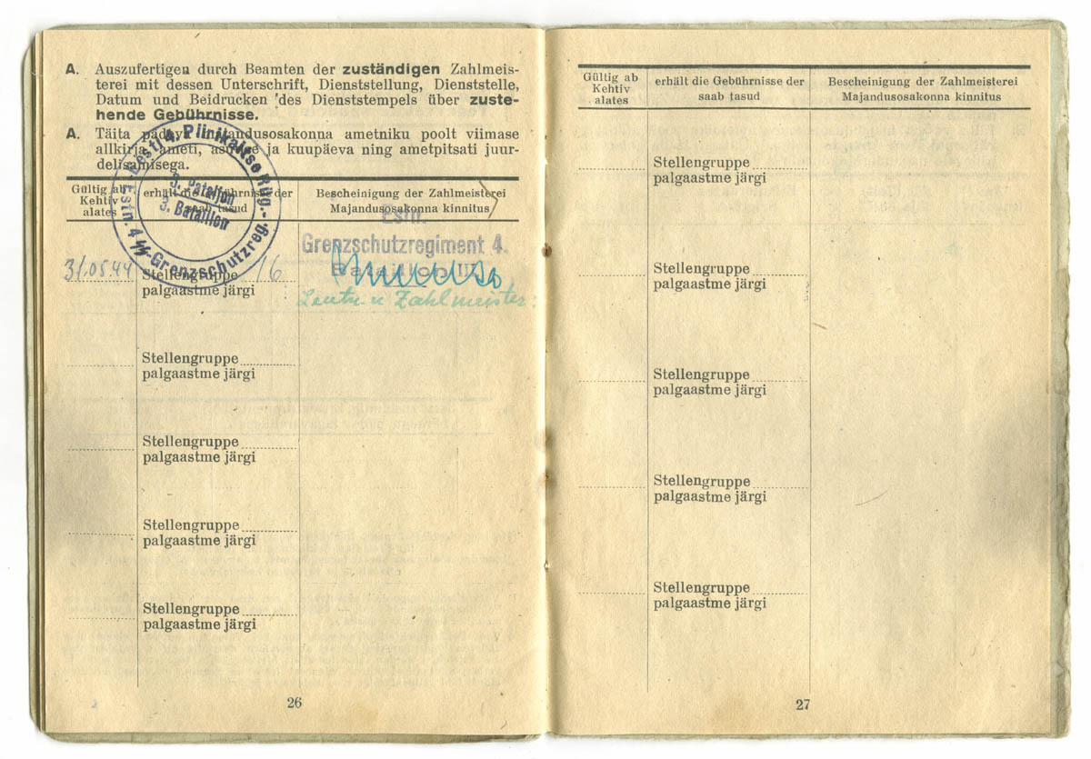 uscha kirjutas:See palgaraamat on välja kirjutatud SS-Ersatzkommando Estland Pärnu Kaitseväeringkonna teenistuses olnud reamehele Juhan Suura'le.