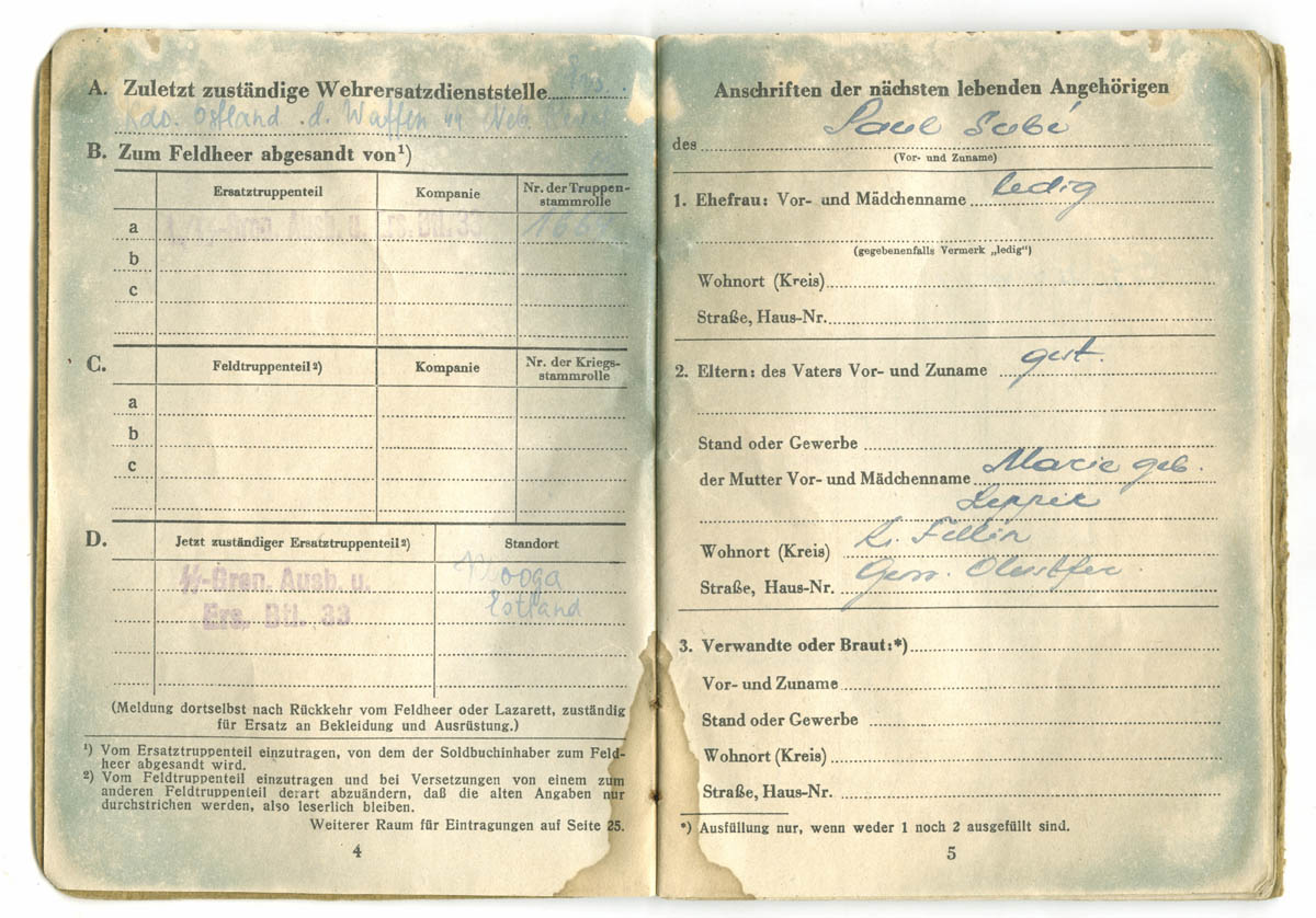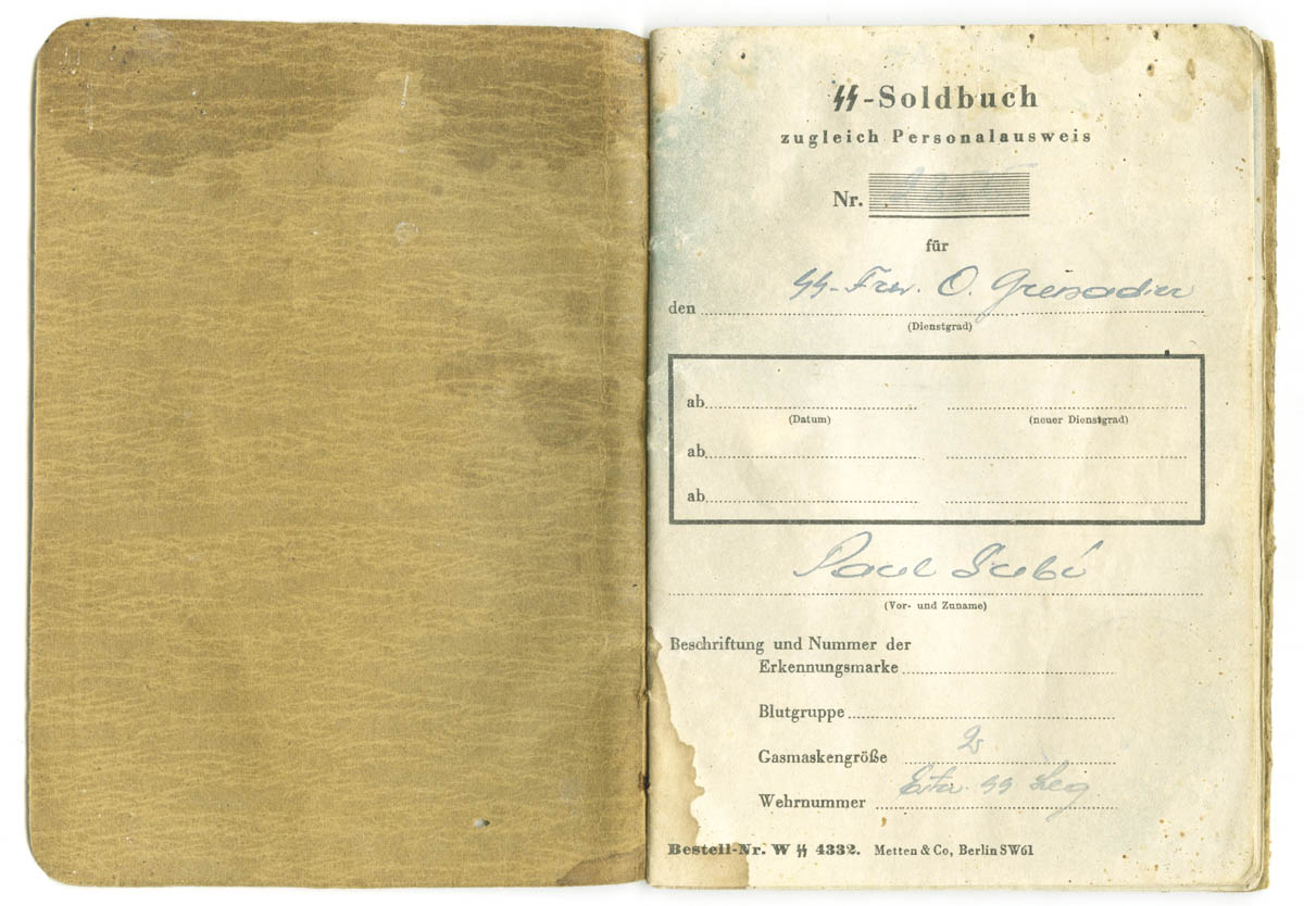 Kolmes sõjaväes teeninud SS-Freiwillige Obergrenadier Paul Subi Soldbuch.