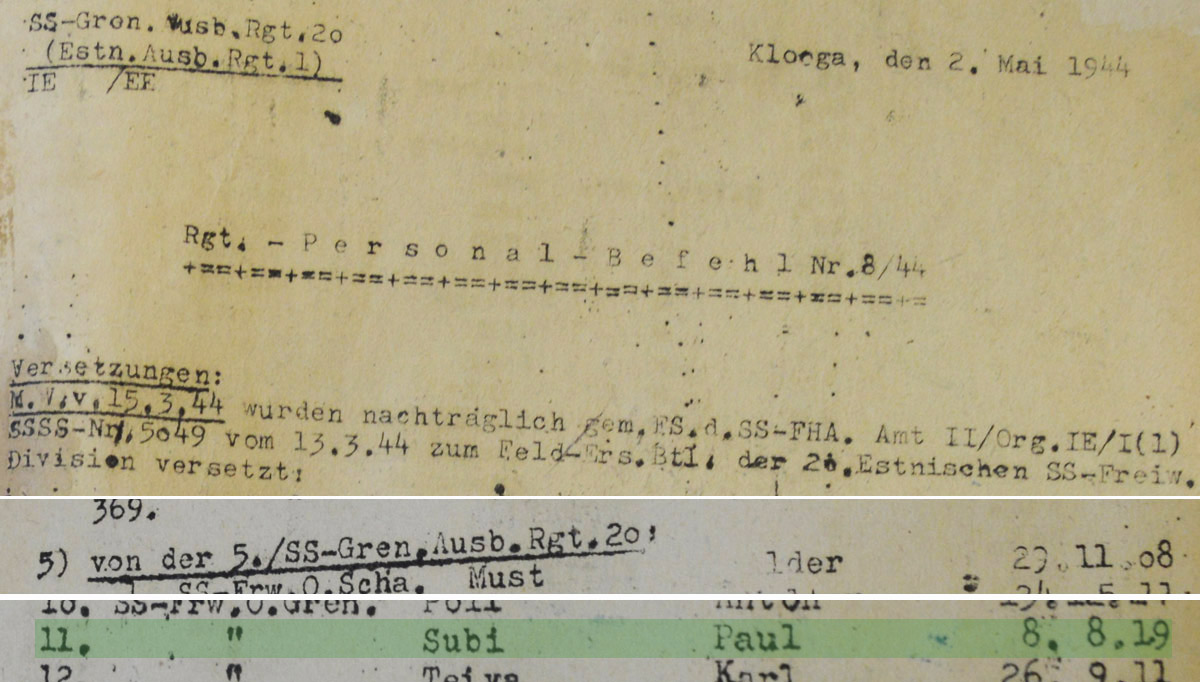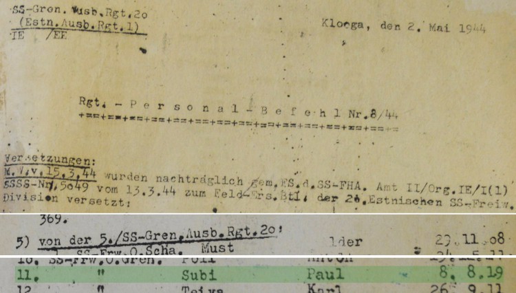 Paul Subi on Kloogal asunud 20. Tagavararügemendi 5. kompaniist suunatud 20. ED Välitäienduspataljoni.