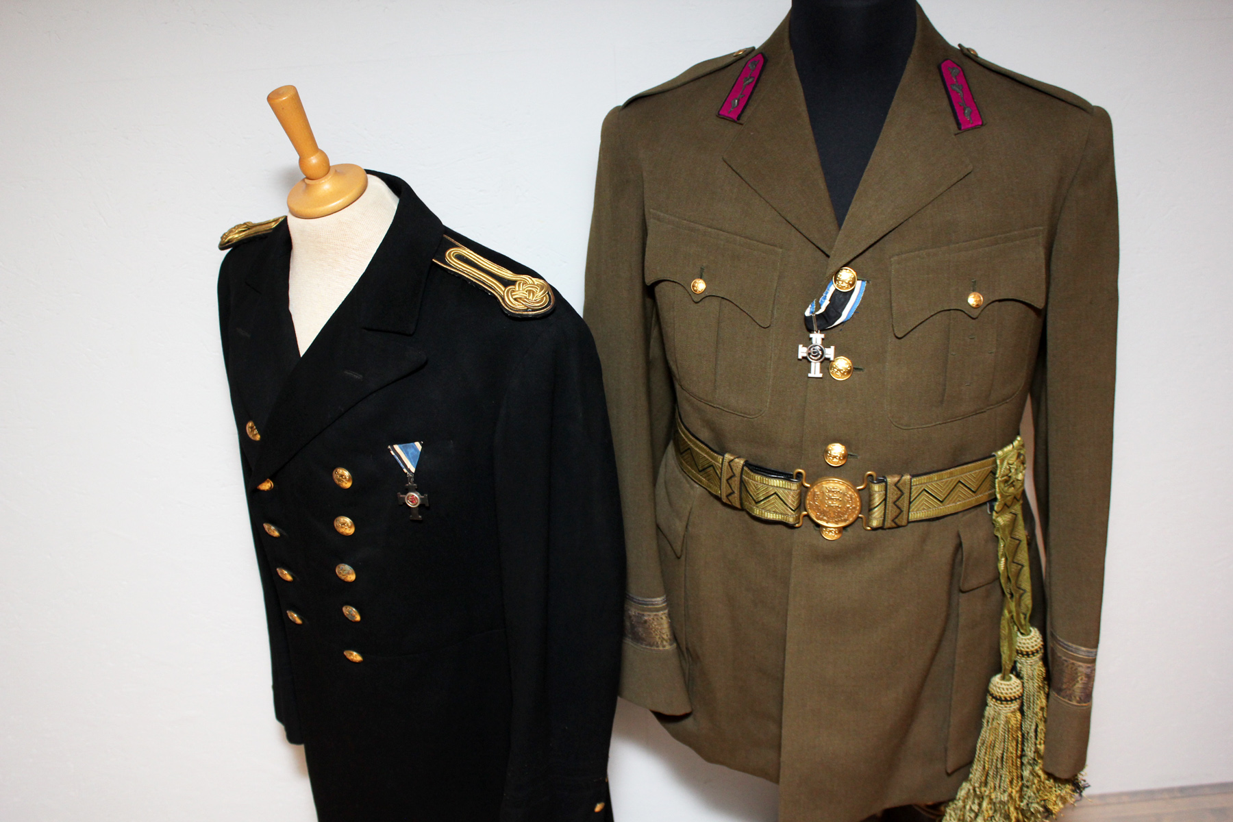 Kaks Vabadusristi kavaleri vormikuube - vasakul merelaevastiku ülem E. Miido VR II/3 ja paremal Kaitseväe Tervishoiu Valitsuse ülema M. Jervani VR I/2 kuub. Miido pikk-kuue pagunid on tegelikult J. Vendla VR I/3 omad. Rinnas olevad Vabadusristid ei ole konkreetselt need, mis on annetatud Miidole ja Jervanile.