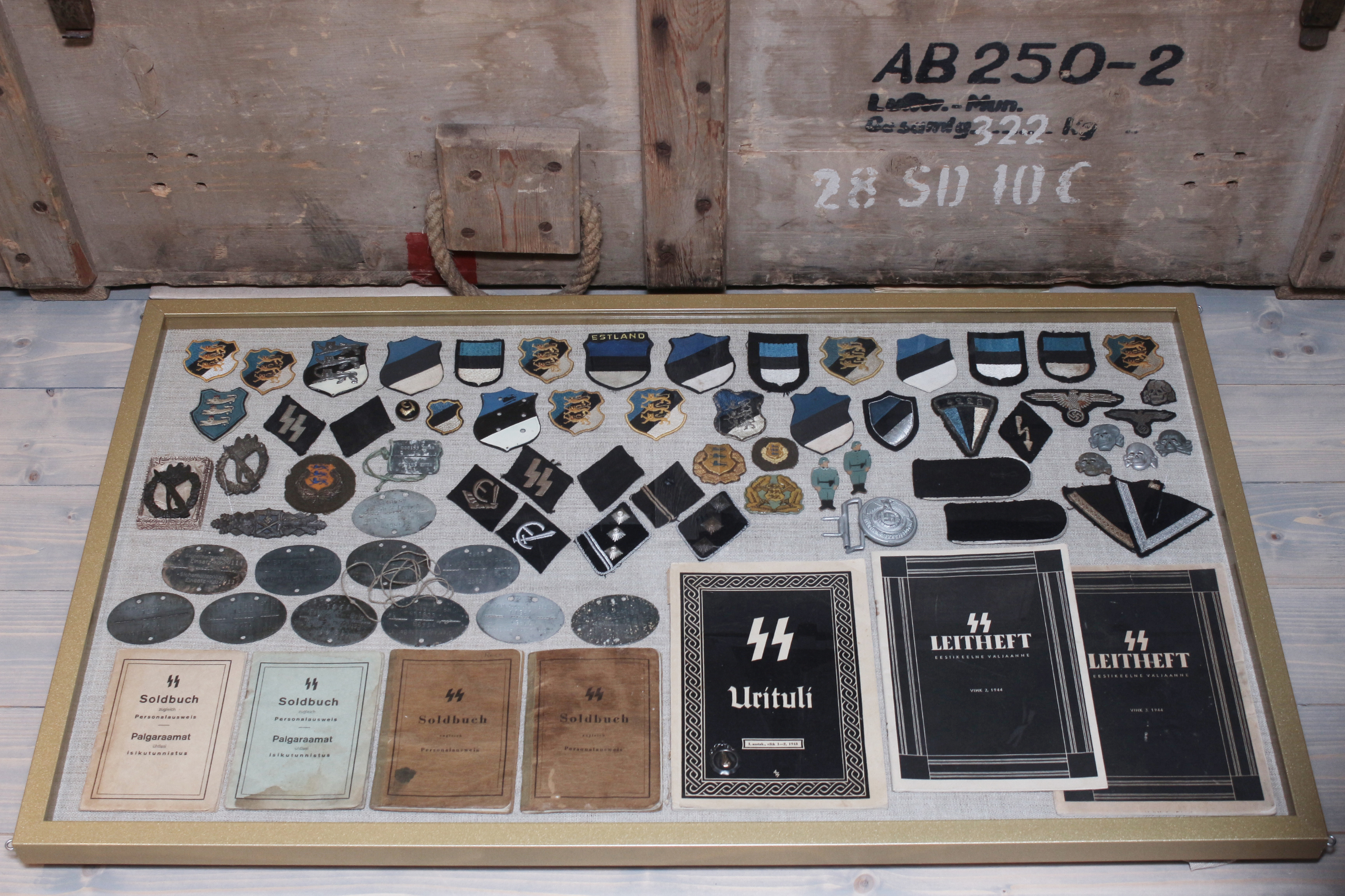 Samuti pakuvad huvi ka sellist varianti käisekilbid, milliseid pildil ei ole ja muidugi ED kraenurgad (eriti metallist Tartu variant) ning Eesti üksustega seotud Erkennungsmarke'd.