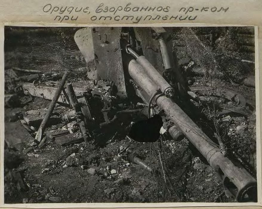 Piltidel on 10,5cm leFH 18M (Axis History Forumi eksperdid kord tuvastasid). Ei ole usutav, et 10,5cm haubitsad asusid positsioonil rindele niivõrd lähedal (Vasa rajoon), pigem on allkiri 2. löögiarmee sõjapäevikus vigane. Kas 3. patarei kaotatud suurtükk?