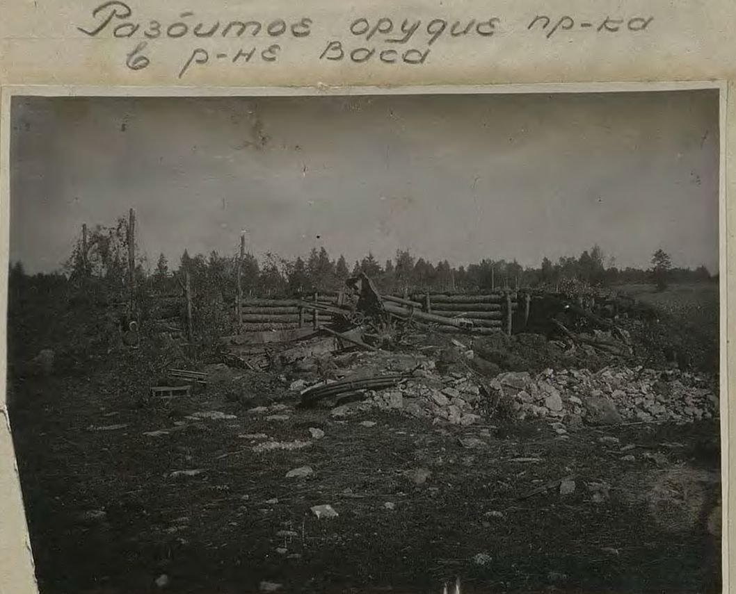 Kaks pilti ühest ja samast suurtükist. Ühe pildiallkirja järgi on tegu vastase poolt taandumisel õhku lastud suurtükiga, teise allkirja järgi on asukoht Vasa rajoon.