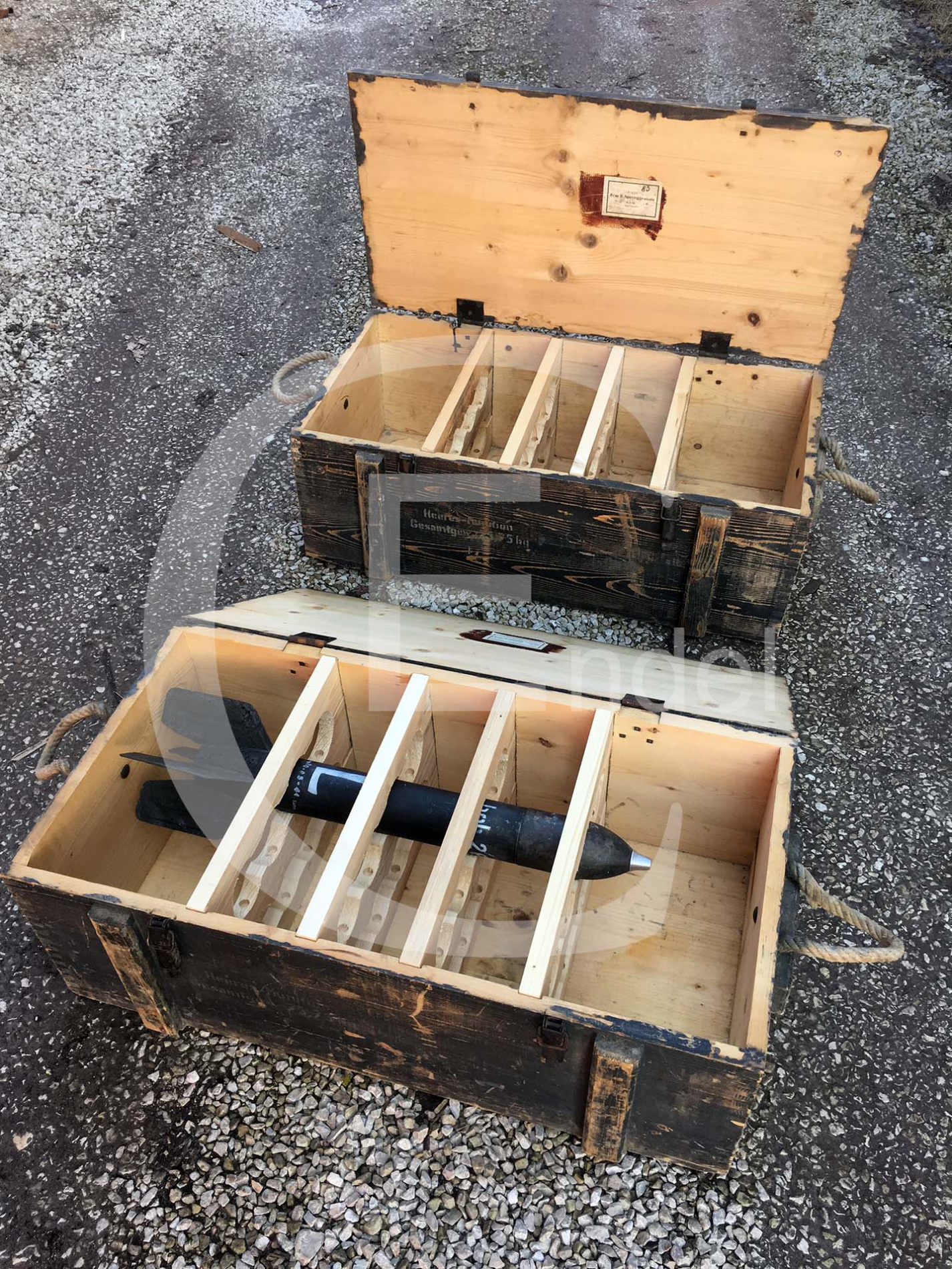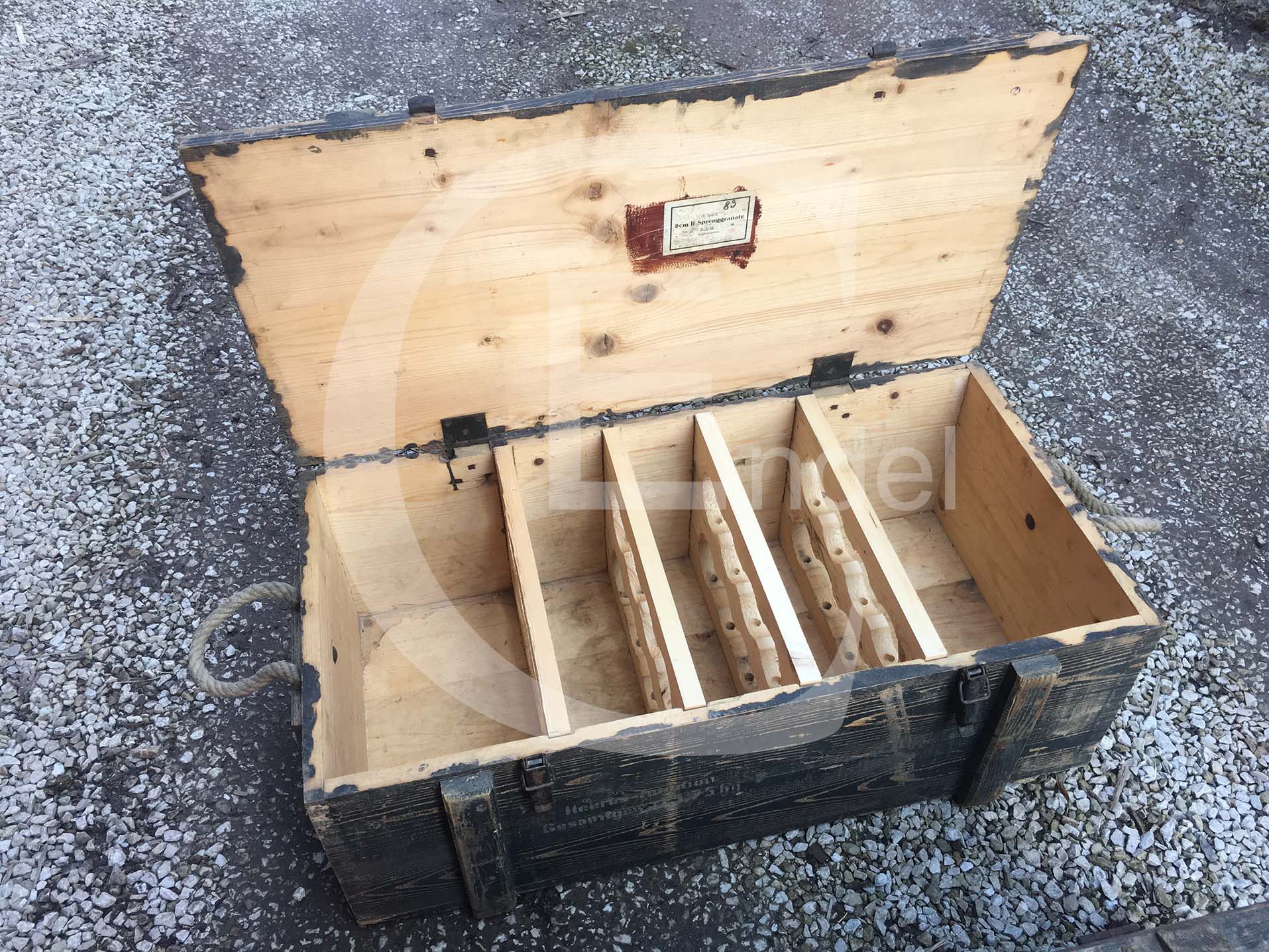 Ostan 2. maailmasõja aegseid laskemoonakaste, -konteinereid, -korve ja -topse. Võivad olla puidust, metallist, papist, bakeliidist või punutud. Seisukord ei ole oluline.