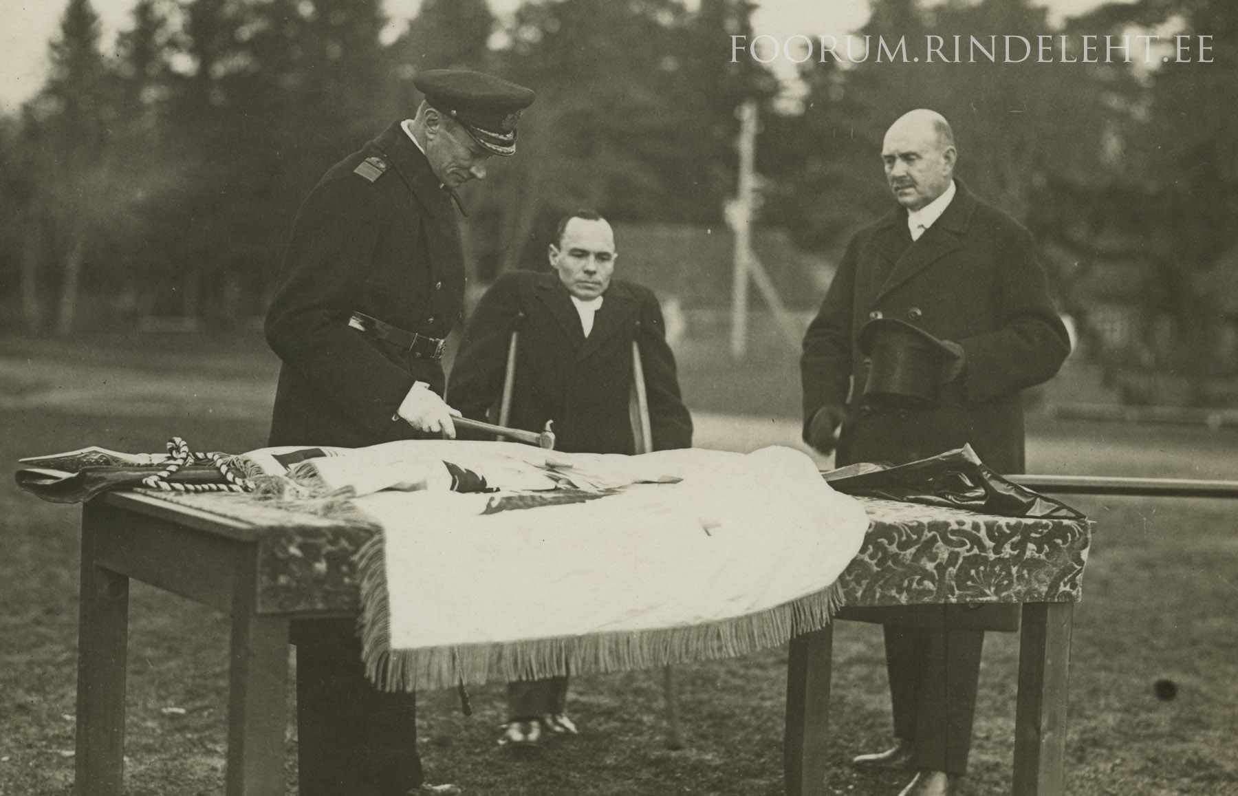 Vasakult paremale kontradmiral Hermann Aleksander Eduard von Salza, Saaremaa maakonnavalitsuse esimees Mihkel Neps ja Kuressaare linnapea Aleksander Allik.