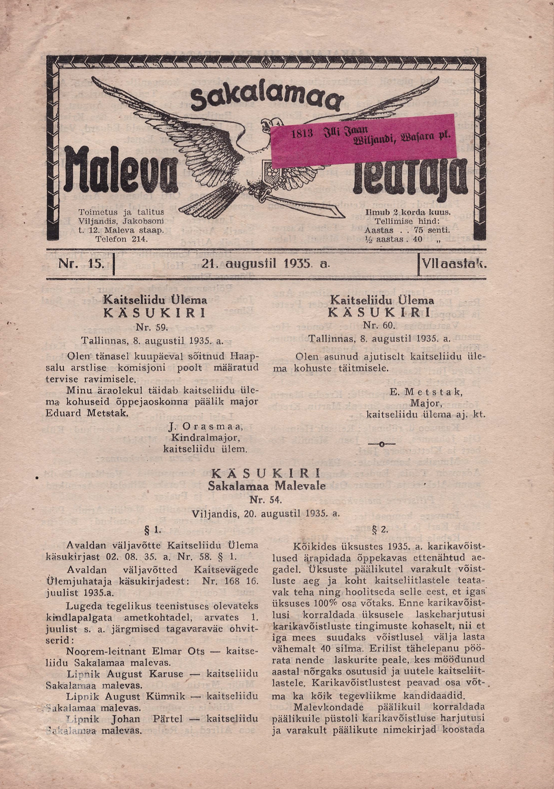 Tänapäevast Sakala kokardit siiski tehtud ei ole.