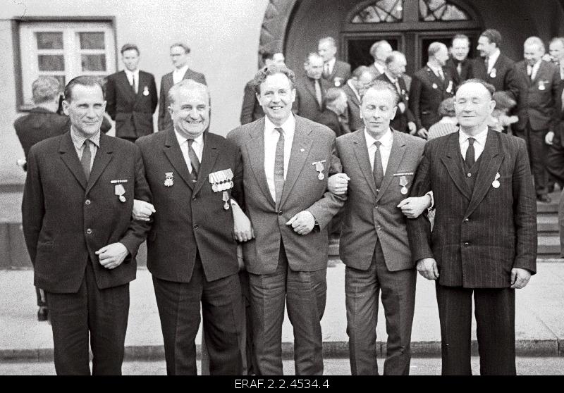 Endiste partisanide vabariiklikust kokkutulekust osavõtjate rühmapilt Toompea lossi ees, 22.05.1965. Vasakult: Endel Lepp, Ülo Taigre, Edgar Püümets, Anatoli Sokolov, Oskar Lang.tossom kirjutas:Veel üks I klass mis tabelis ei kajastu, kuigi dokumendi number on Rooma ja Õuna omale väga lähedal. Sain Püümetsa kohta teada niipalju, et toimetas oma partisanitegemisi Põhja- Eestis. Ühestki raamatust seni tema kohta informatsiooni leidnud ei ole, et kui keegi oskab midagi kosta, siis palun.