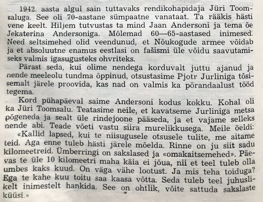 Ja siin ka Aleksander Kallaste mälestusi, pildistasin nad üles raamatust ''Rahvatasujad''. Loodan, et on loetav.