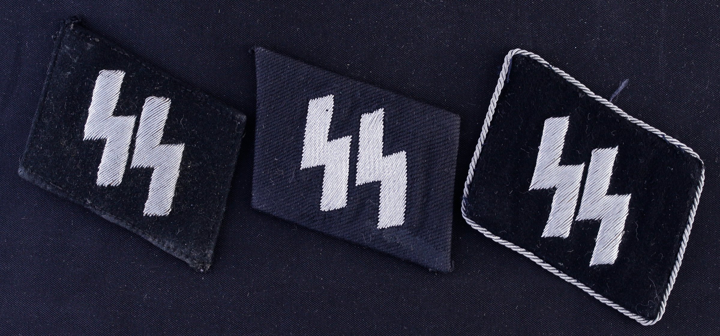 Valik hõbeniidiga ruune - ülemises ja alumises reas on käsitööna valmistatud embleemid ja keskmises reas peenikese metallniidiga masinkootud embleemid. Masinkootud hõbedasi ruune tegid kaks valmistajat ja nende tehase kood oli märgitud sinise tinditempliga embleemi tagumisele küljele liimitud paberetiketile - nendeks olid valmistajad koodidega 134 ja 374 (lisatud pildil vasakul on 374 ja paremal 134). Valmistaja 374 tegi täpselt samasugust embleemi ka peenikese puuvillaniidiga. Väga tihti viidatakse hõbeniidiga valmistatud embleemidele (kraenurgad, kotkad ja varrukalindid) kui ohvitseride omale aga tegelikult see paika ei pea. Igaüks võis endale soovi korral uhkemaid embleeme osta ja vormikuubedele õmmelda. Kraenurga puhul eristas ohvitseri oma sõdurist embleemi serva õmmeldud hõbepeal nagu on näha viimase rea embleemidel. Ei olnud ka haruldane kui ohvitser ajas hõbepaela serva ka tavalisele puuvillaniidiga õmmeldud embleemile.