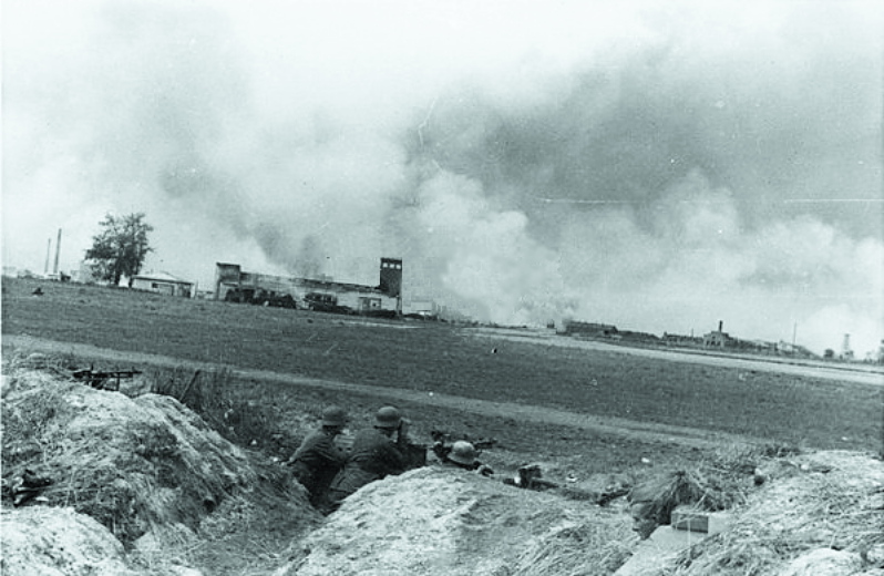 Sakslased on lennuvälja ääres, vasakul Sossi korstnad ja paremal Dvigateli hooned?