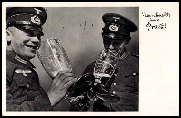Well, whether we’re winning or losing, these will come in handy… Waffen-SS soldiers relax during the fierce fighting at Kursk in the summer of 1943 with Moët & Chandon champagne.