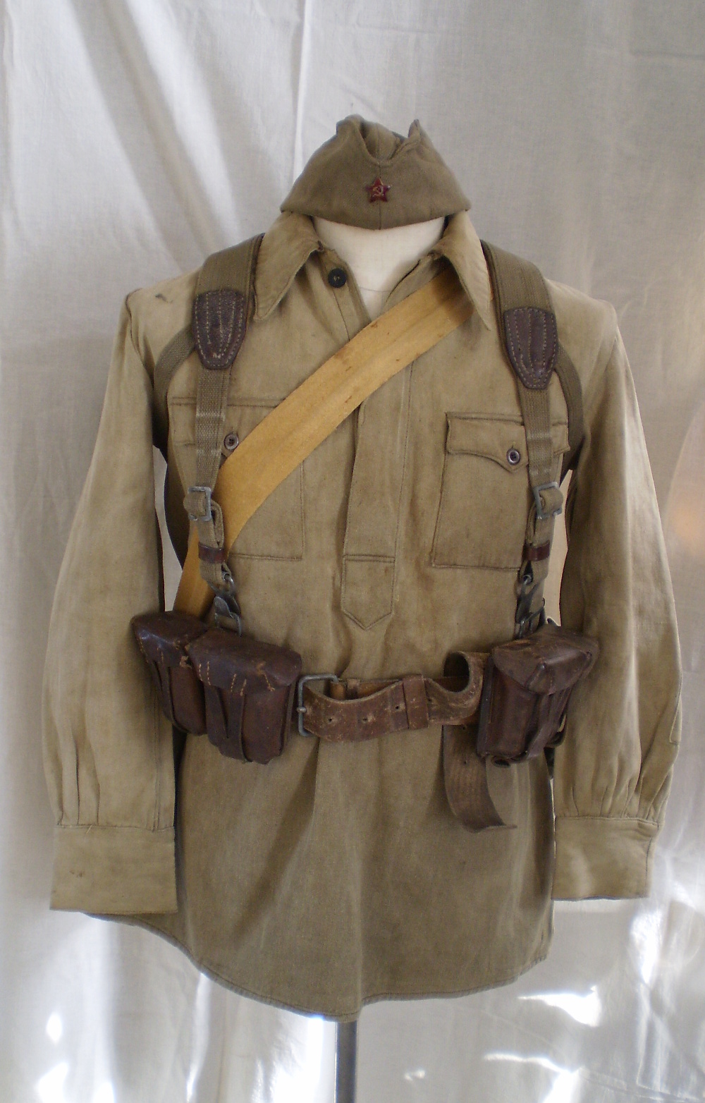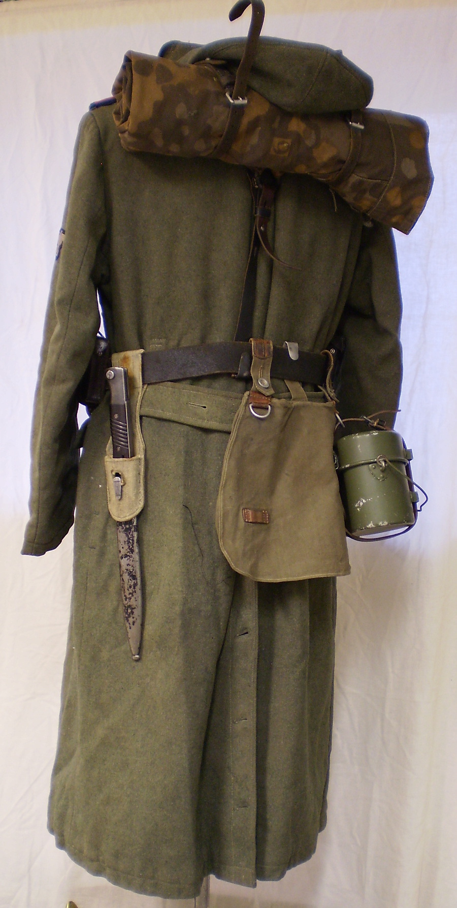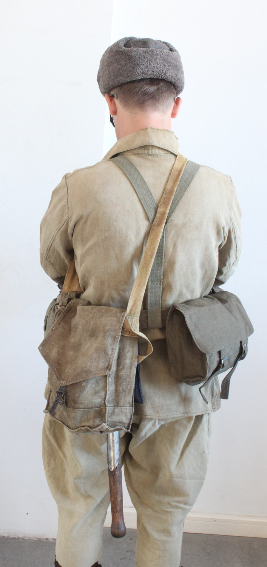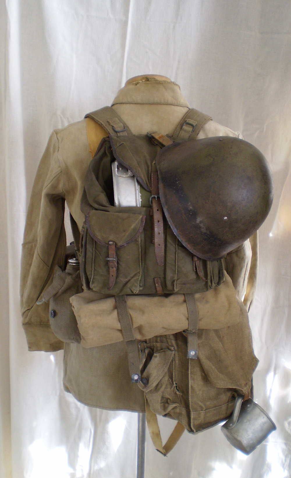 Pudelil markeering 1940 ja kotil tempel sees aga välja ei loe. Riie ja nööp sõjaaegsed. Venelastel oli sõja ajal markeeritud ja markeerimata metallnööpe.