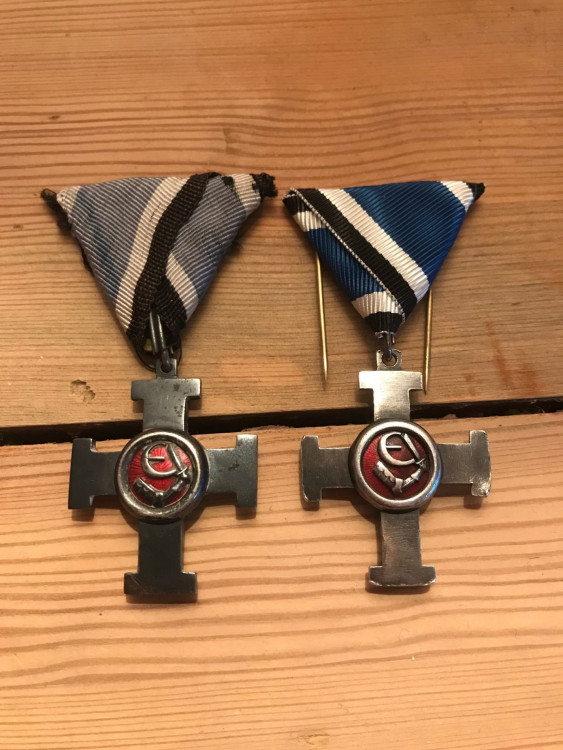 Lisan siia kaks risti minu kogust. Peaks olema Tavasti ristid, kuigi parempoolne on huvitav. Oluliselt väiksemate mõõtmetega ja ka südamikud on erinevad. Kas mingi proovitöö? Või polegi Tavasti oma? Vasak pärist Saksamaalt ja teine Kanadast. Kellele annetatud, kahjuks info puudub. Parema risti lint, lindi plaat, nõel ja kinnitus taastatud R.Tavasti töökojas. Suured tänud R.Tavasti töökojale taastamise eest! Lint peaks olema originaal muaree. Algselt oli ristil kinnituseks rõngas.