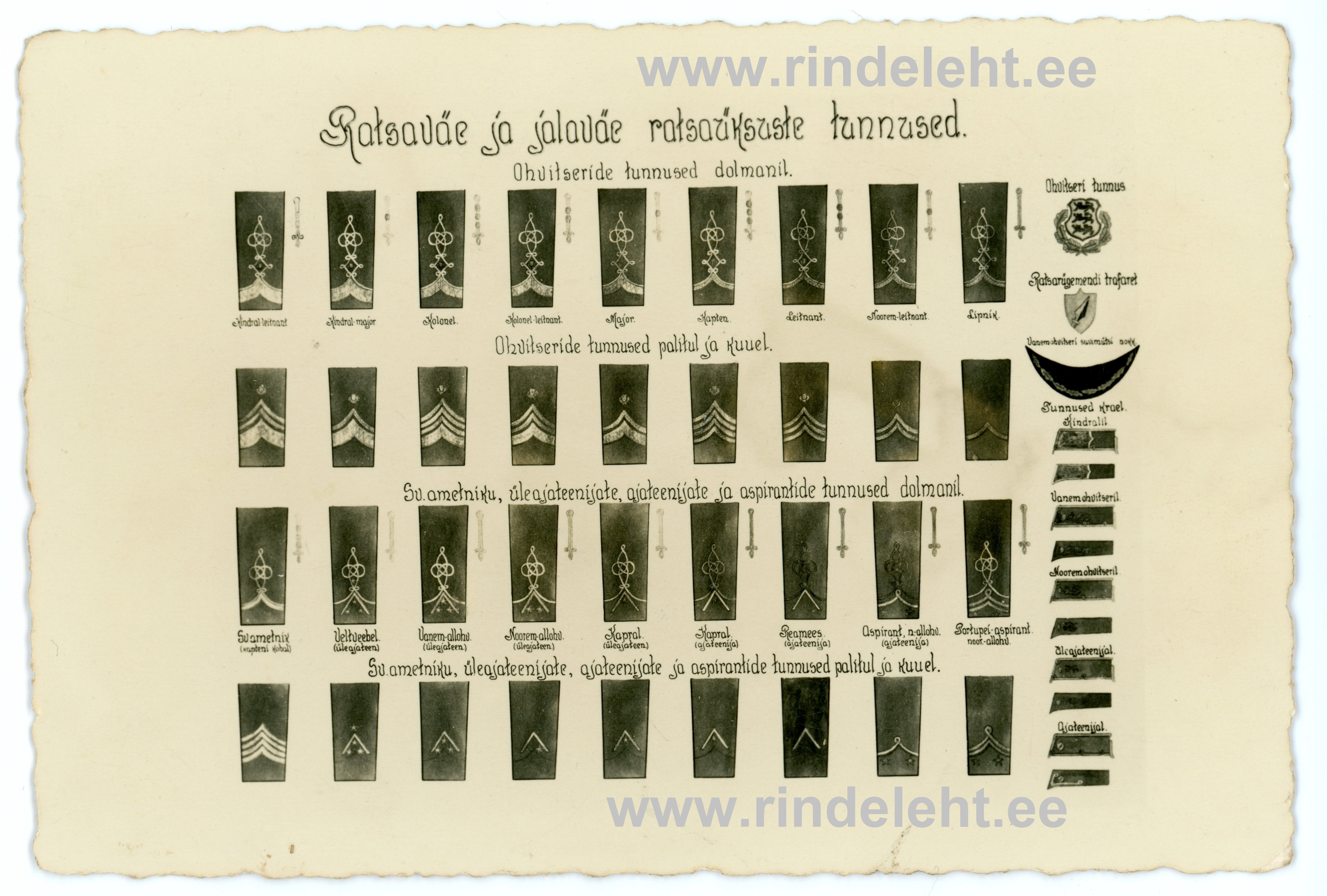 Postkaart... M36 ratsaväe ja jalaväe ratsaüksuste tunnused.