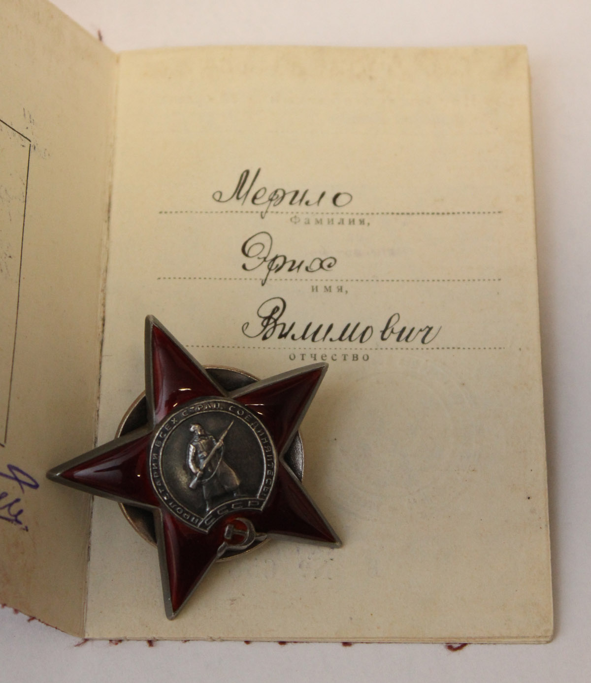 Eesti Laskurkorpuse 249. laskurdiviisi 917. laskurpolgu leitnant Erich Merilo Punatähe orden, esitati vist Za Otvagu medaliga autasustamiseks aga anti Punatäht.