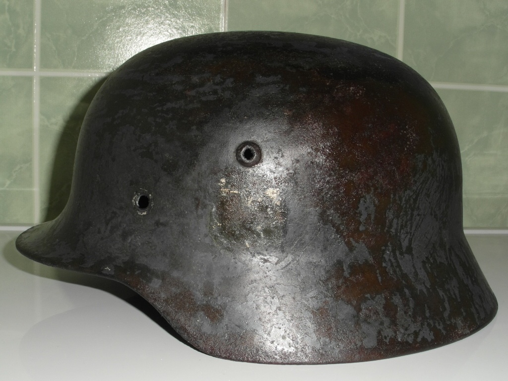 Puhastasin hiljuti ühte kiivrit.Ühelt poolt sain kätte SS dekaali jäänuse ja teisel pool on üks dekaal teisega üle kleebitud.Alumine on olnud varajase Wehrmachti kiivri oma.Millele on hiljem midagi uut peale kleebitud.Pealmine pole enam kahjuks tuvastatav kuna kellegi kuri käsi on kunagi mingil põhjusel neid dekaali kohti maha kraapinud.Ühesõnaga tundub et mingil hetkel on saanud wehrmachti kiivrist SS-i oma.Aastate jooksul päris hea hulga juba neid kiivreid puhtaks tehtud aga sellist aretust pole enne kohanud.Väike pildi materjal ka jutu juurde.