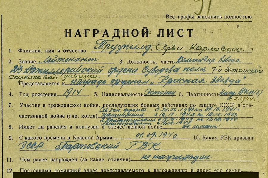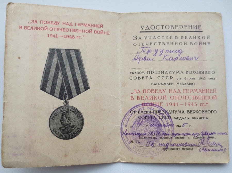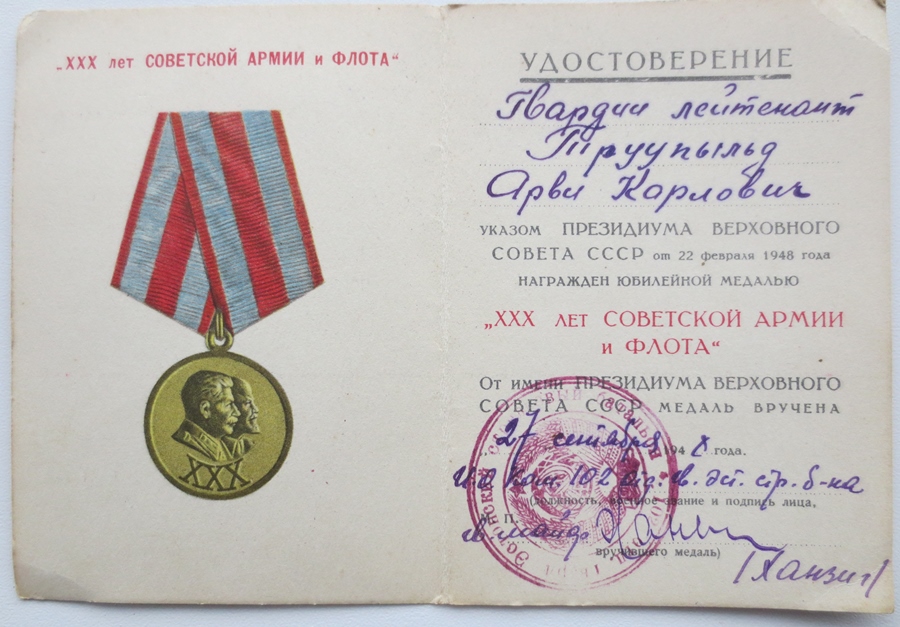 Ja kaardiväe kapten Arvi Truupõld, 7. Laskurdiviis. Hetkel saan kahjuks näidata vaid dokumente, ehk tulevad ka autasud kunagi välja.