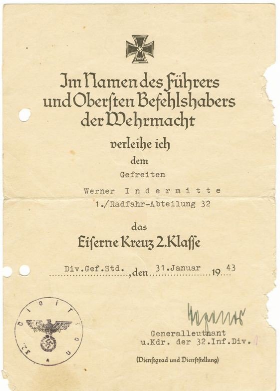1188. Gefreiter Verner Indermitte > Tõnis Vastalu - EK2 (Paide, sünd. 08.02.1915)