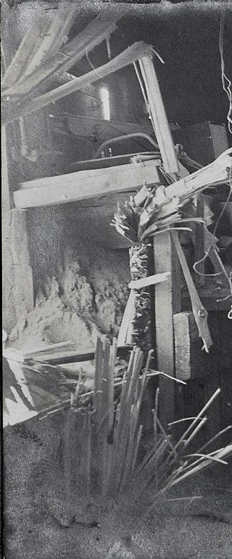 Kurat seda teab, mis asjandusega tegemist oli, kuigi meenutas plekist moonakäru. Umbes max. meeter lai (pikkust kahjuks ei oska öelda) kandiline kast ümarate nurkadega ja paistvas otsas oli rattakoopa moodu süvend. Ehk mingi supikäru? Vblla mingi vanema sõidumasina pagasnik tagavara ratta süvendiga totakas poosis? Kosu oli poolenisti kiviaias ja see oli lahti võetud, seatap jäigi auk järgi.
