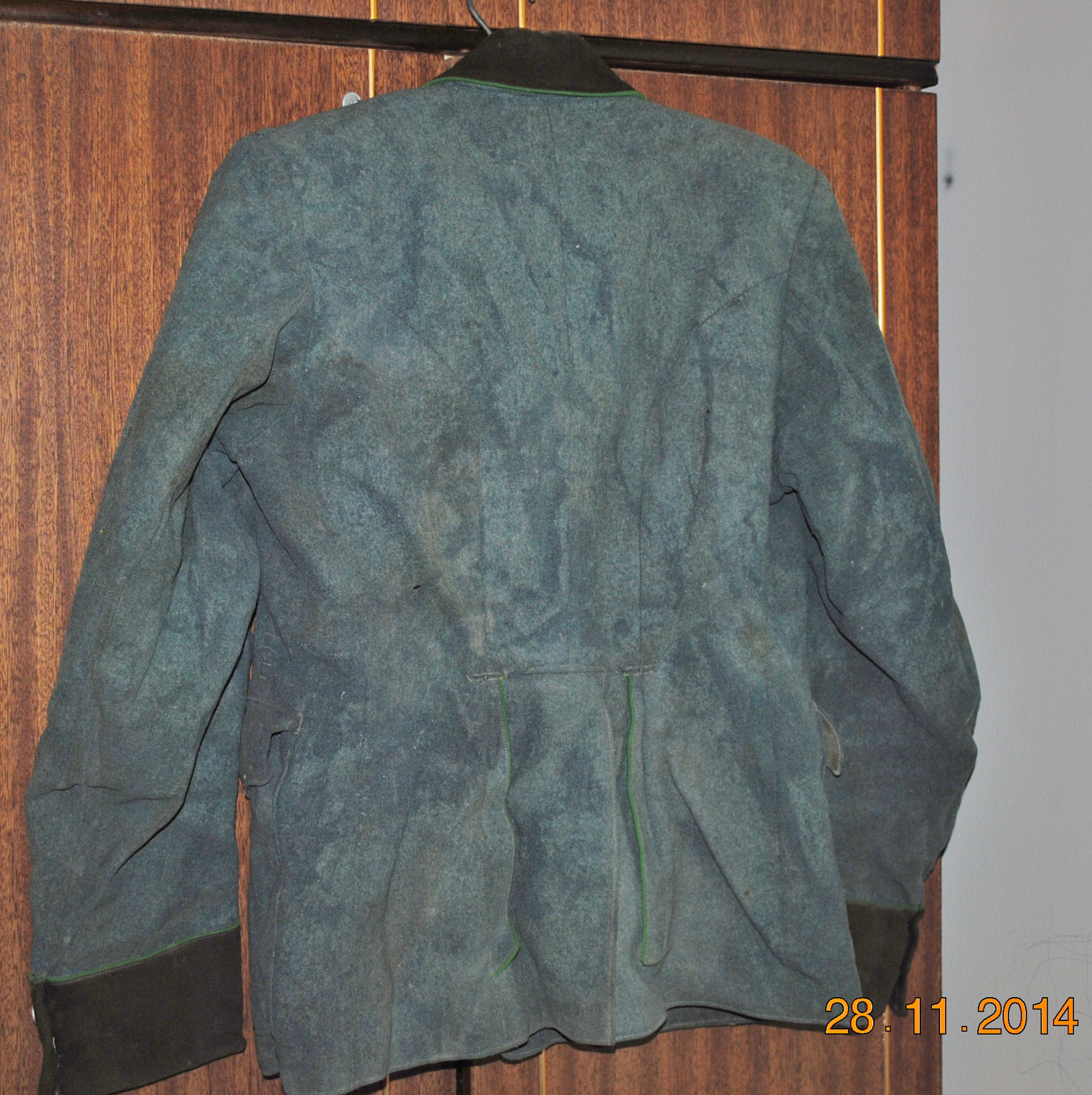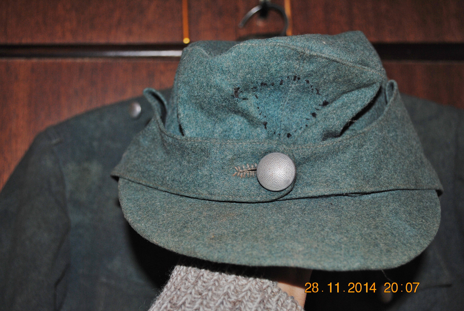 Panin foto illustreerimaks juttu.Jah frents väga kvaliteetse tegumoega.Tempel sees 1941.Krae ja varukaotsad mustjaspruunid kahe nööbiga ja rohelise kandiga ääristatud. Feldmütze ühe nööbiga ja samuti purematta.Isegi mütsimärgi eest harutamisel jäänud niidijuppe on veel näha.