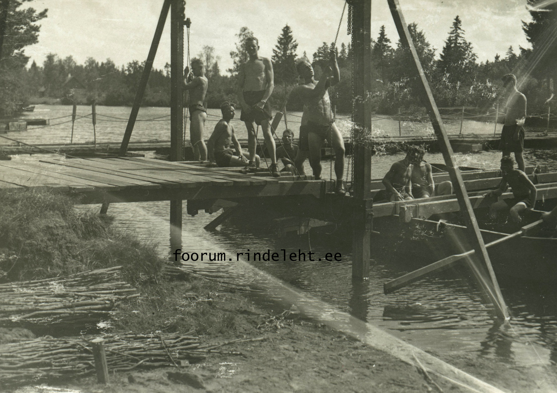 Nendel fotodel ei ole taga kirjas, et tegemist oleks Jägala laagriga ja kahjuks ei ole taustal paistmas ka ühtegi teada-tuntud insenerilaagri ehitist. Lisan need pildid siiski siia teemasse, sest ülisuure tõenäosusega on ülesvõtted tehtud ikkagi Jägala inseneriväe laagris, sildu ehitavad Sõjakooli kadetid.