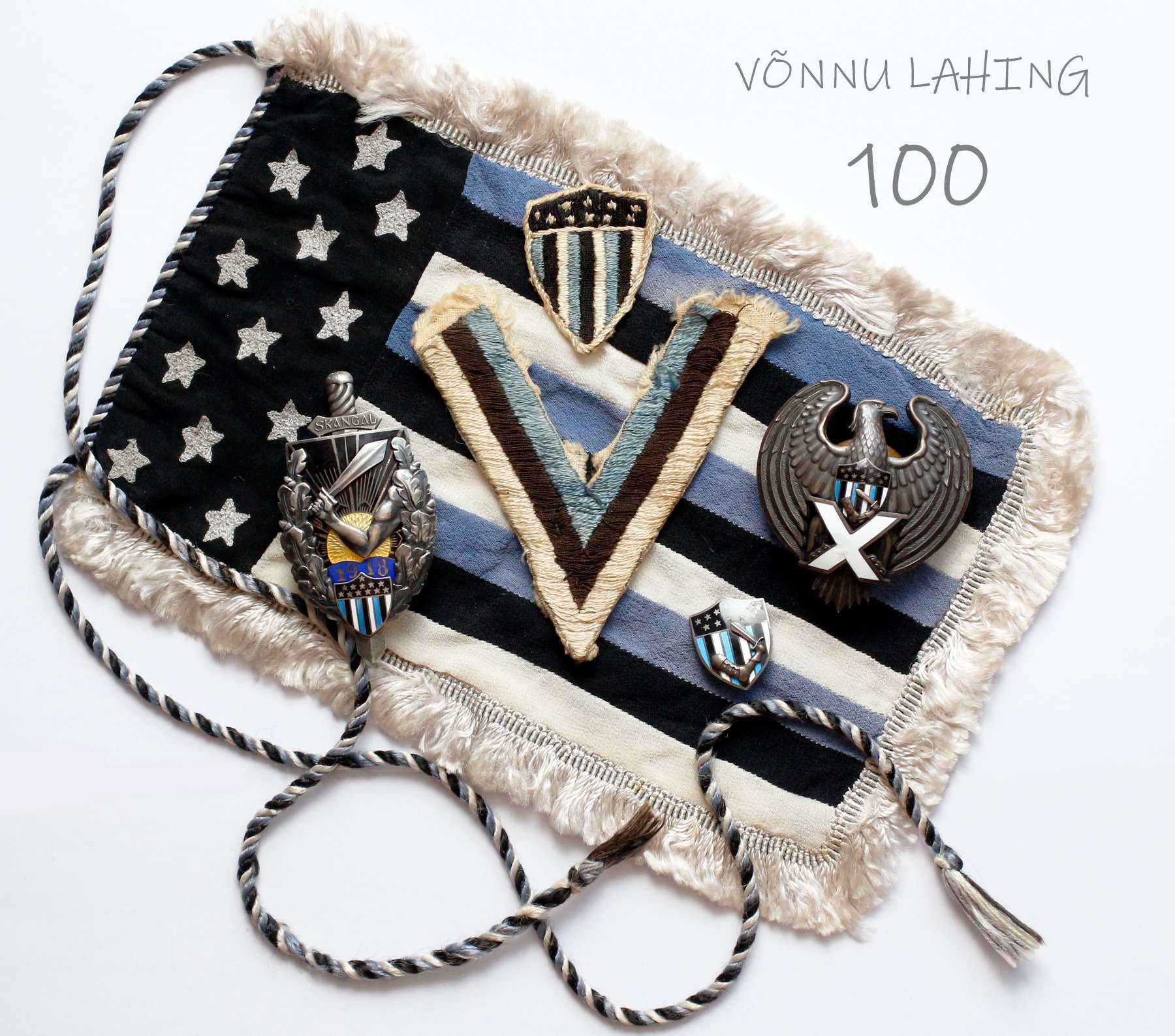 Võnnu lahingust võttis osa ka Eesti Rahvaväe Kalevlaste Maleva pataljon, millest hiljem kasvas välja Eesti sõjaväe Kalevi üksik jalaväepataljon ja Kaitseliidu Tallinna maleva Kalevi malevkond. Pildil on Vabadussõja-aegne Kalevlaste Maleva varrukaemblem ning 1930-ndatest aastatest pärit Kalevi ÜJP rinnamärk, KL Kalevi malevkonna laualipp, rinnamärk ja malevkonna Kotkamärk, mida annetati 10-aastase kohusetruu teenistuse eest malevkonnas.