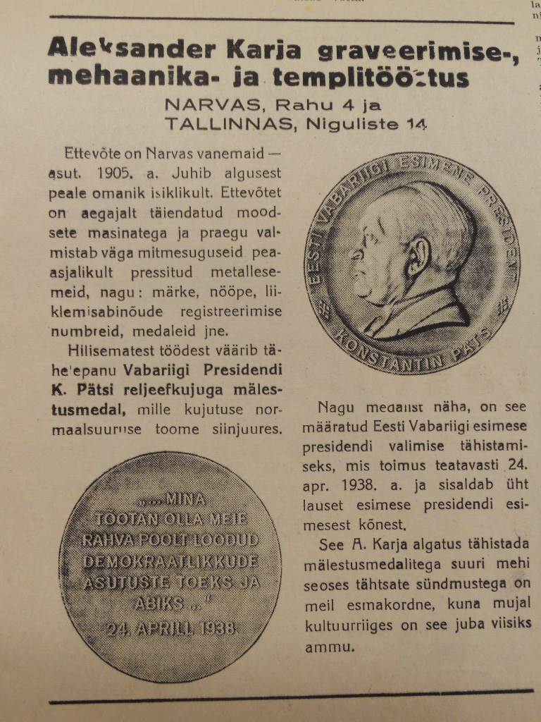 Uus Eesti 30.10.1939: Päevaleht 17.04.1937: