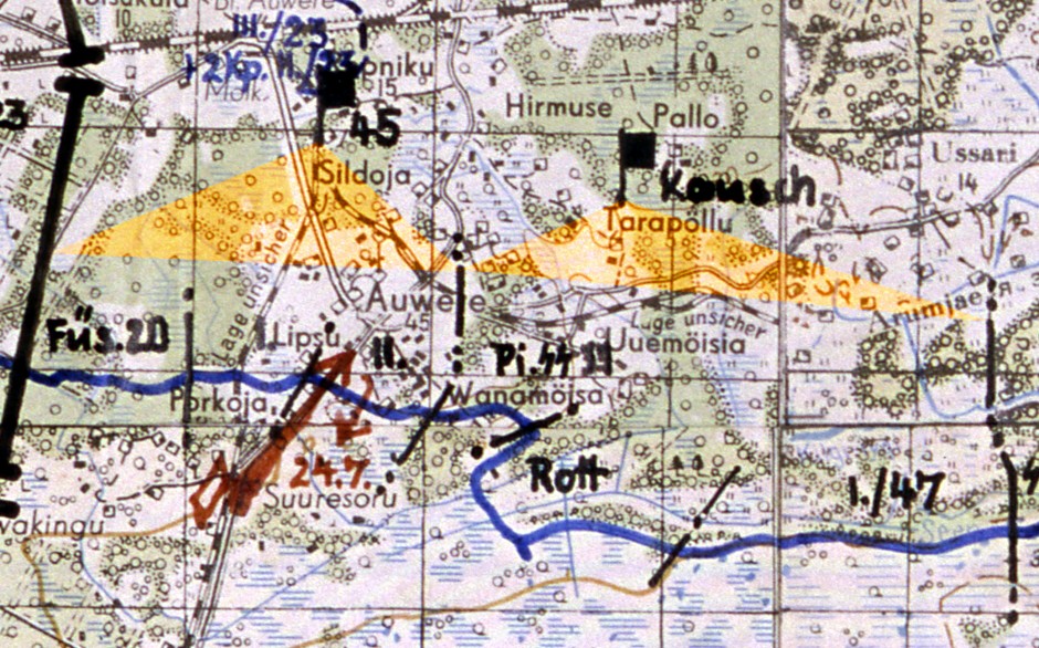Nagu näha on märgitud Auvere suunale kõigepealt Kauschi grupp ja siis tulevad riburada eestlaste üksused!