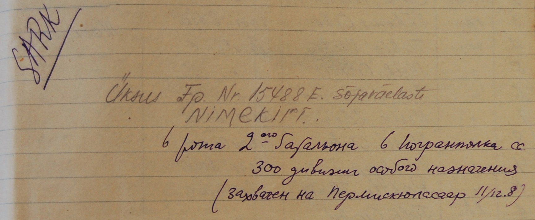 6. PKR 6. kompanii nimekirjas teda ei ole. Ilmselt oli siis 5. või 8. kompanii koosseisus.lauri kirjutas:Kas leidub nimekirjades ka selline mees: