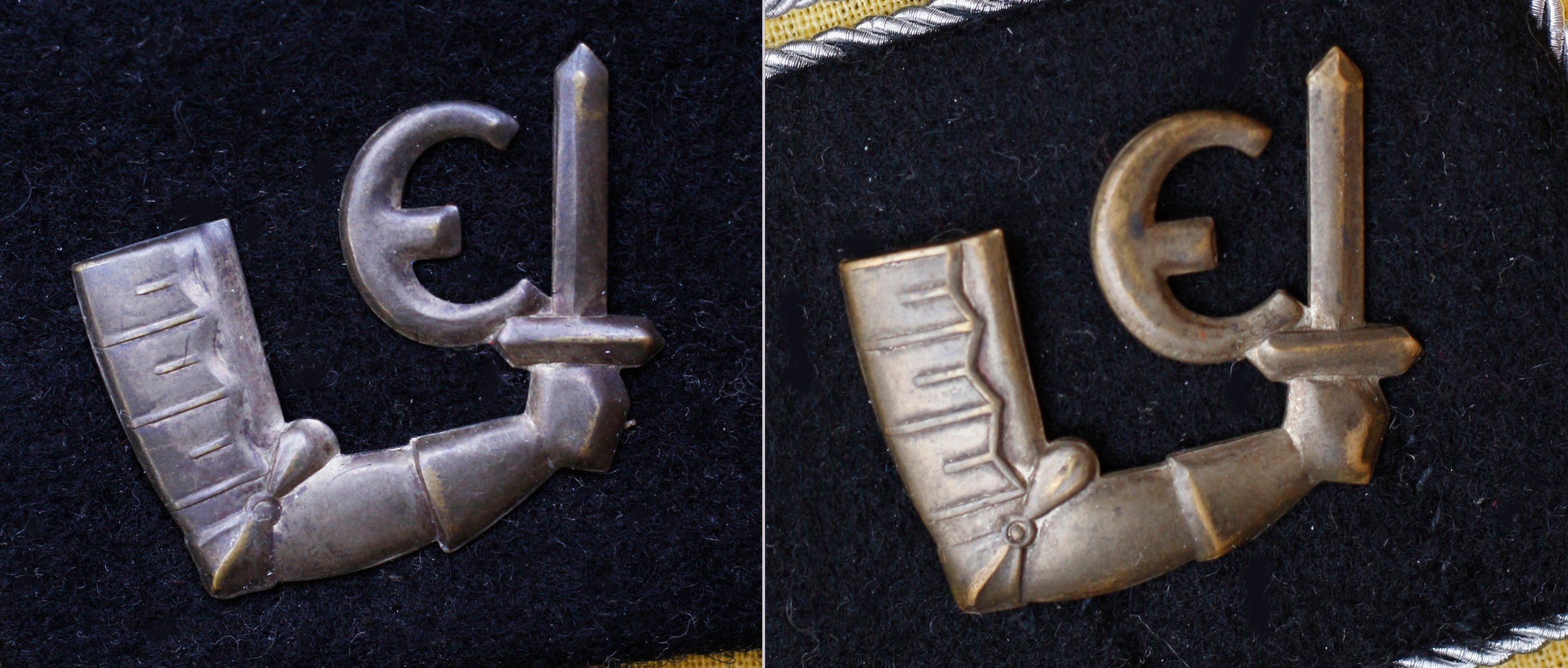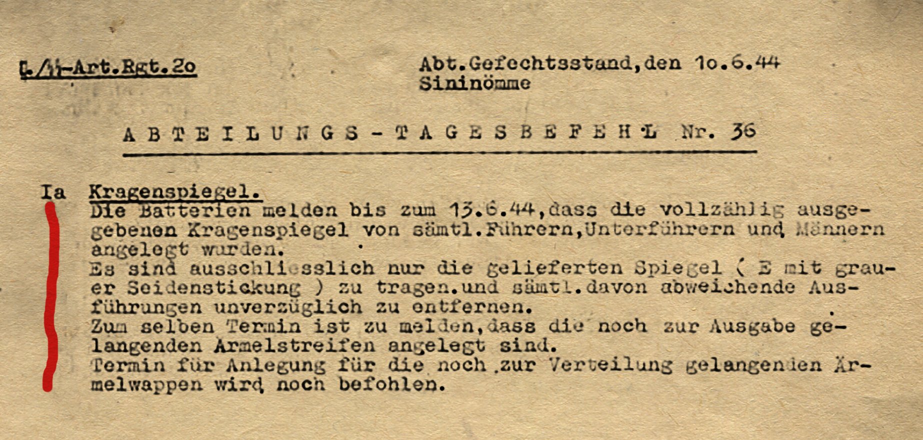 Huvitav, kas need 7. juuniks välja antud vapid ja kraespiiglid ongi juba musta servaga Dachau trikoloorid ja nn. Dachau 1. variandi kraenurgad?